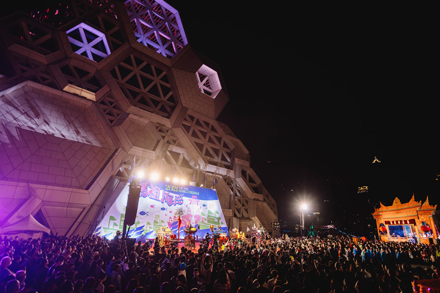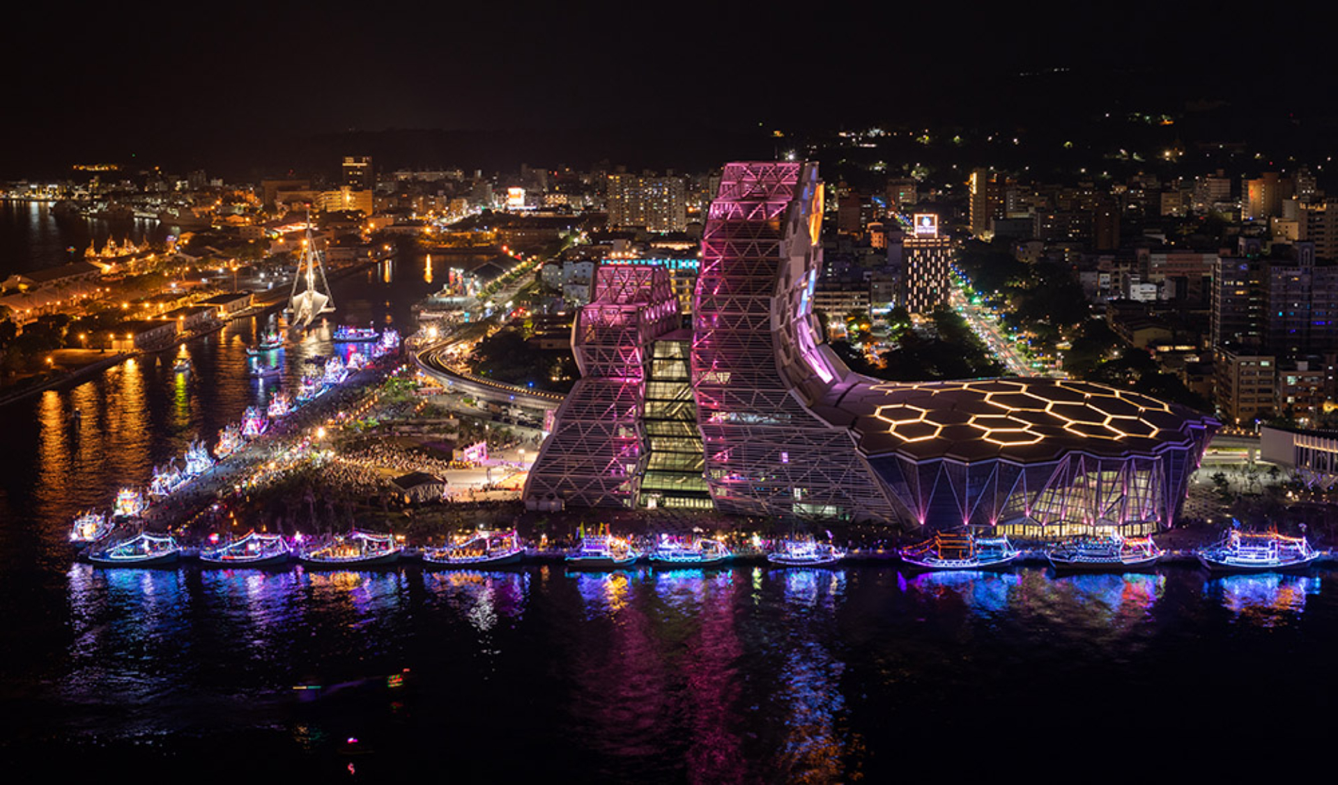 四年一科、全國最大規模海路出巡的林園鳳芸宮媽祖,今年海上巡香船隊路線,4月30日自林園中芸漁港啟航,首日駛扺愛河灣,吸引上萬名信眾前往接駕,將現場擠得水洩不通,當晚也是媽祖首度駐駕「高雄流行音樂中心」戶外廣場,讓信眾參拜祈福,在神明船隊五光十色的燈光映射下,將高雄港夜空妝點地更為繽紛璀璨,為這場難得的宗教盛事留下最美麗的註記。