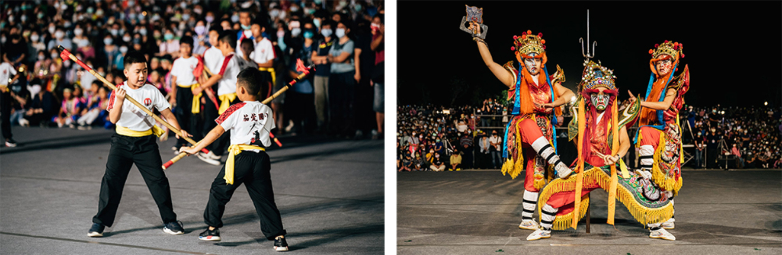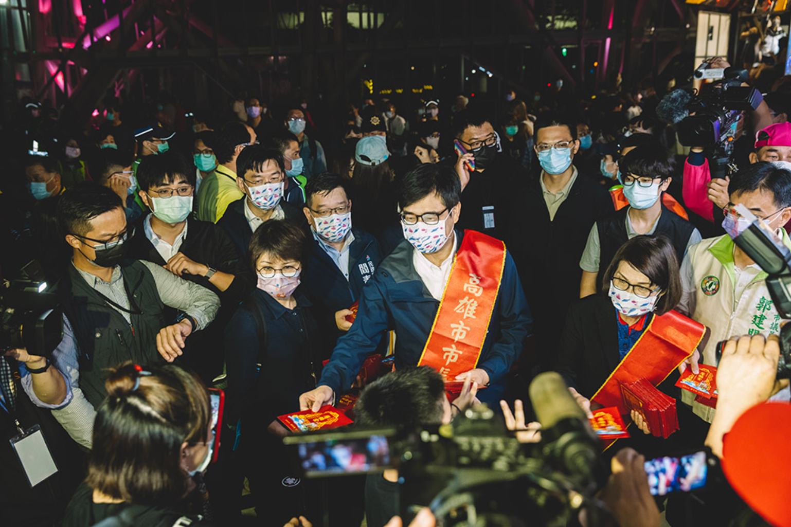 陳其邁市長除了發放壓轎金祈福外,並與現場信眾一起焚香祝禱,他說:「我代表所有市民朋友歡迎天上聖母媽祖婆駐駕高雄港,並祈求媽祖,讓疫情趕快退散,旱象趕快過去。」陳其邁市長也感謝鳳芸宮所有工作人員,讓高雄市民享受難得的傳統宗教文化饗宴,讓大家見識到「海巡媽」的神威顯赫,庇護我們這塊土地。在市長致詞後,文化局與高雄市立歷史博物館安排在地藝陣戲曲會演謝神,由「呂柏達娘傘團」打頭陣,接著還有「光榮國小」跳鼓陣、「茄萣國小」宋江陣、「鼓山地嶽殿」吉勝堂八家將、「振宗藝術團」女官將首、「臺灣豫劇團」神將會等接力表演,最後則有春美歌劇團的酬神戲、金鷹閣電視木偶劇團、康樂舞台等演出,為入夜後的愛河灣留下熱鬧神采的一幕。