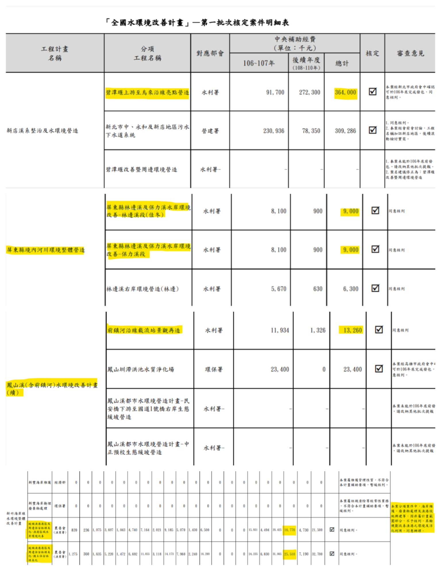 前瞻計畫水環境建設的第一個爭議在於,預算分配是否合理?