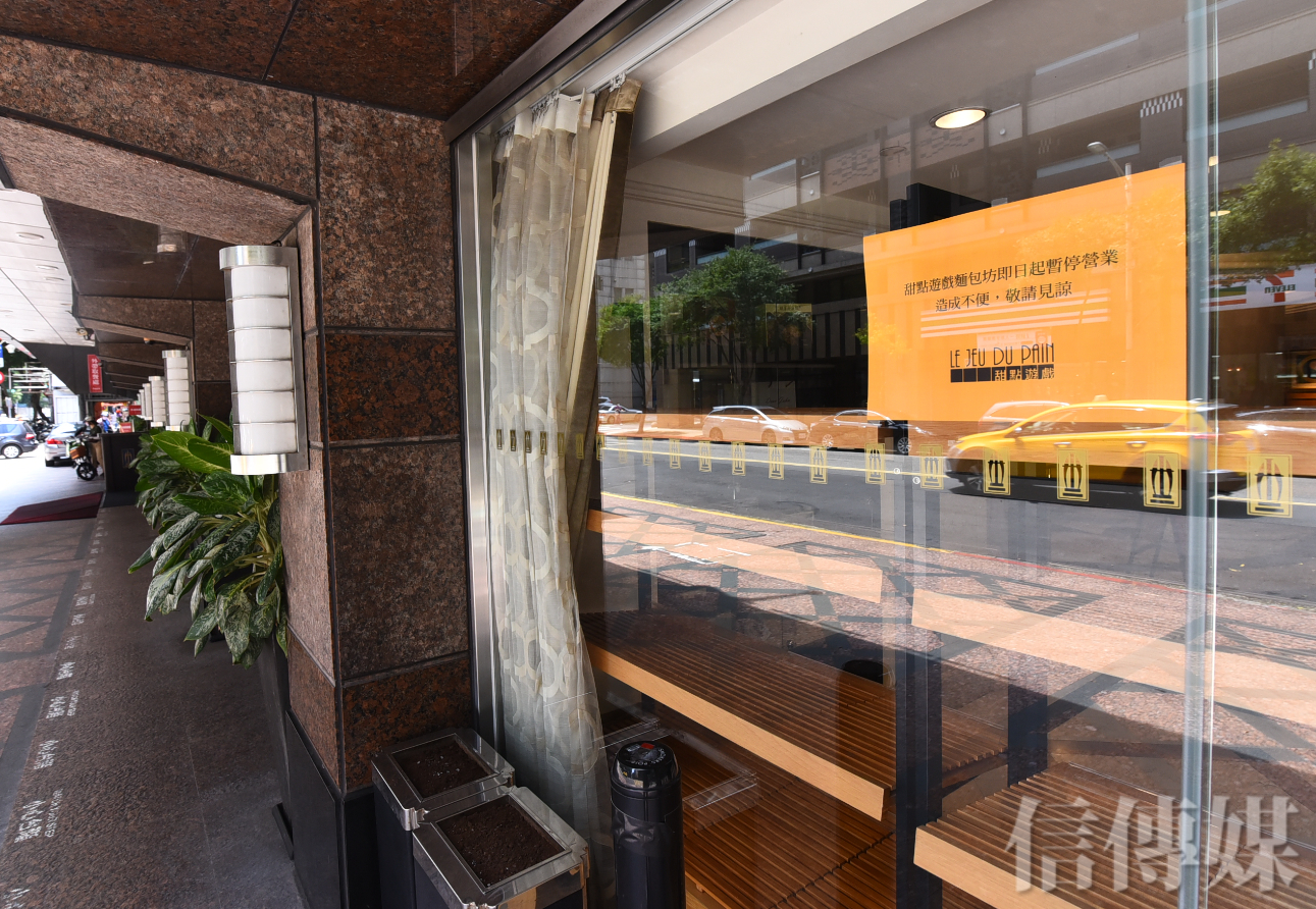 華國飯店旁的麵包坊貼出公告暫停營業。(攝影/趙世勳)