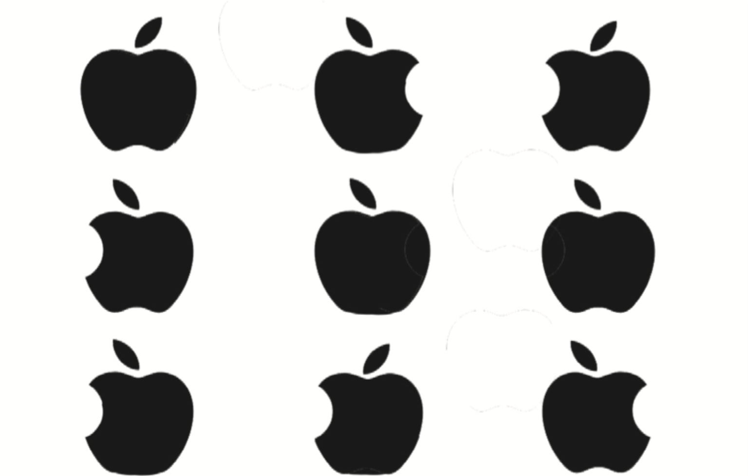蘋果的商標是全球最容易辨識的圖像之一,請試試憑記憶畫出蘋果的商標。或者,你可以從下面九個圖形中,識別出真正的蘋果商標嗎?