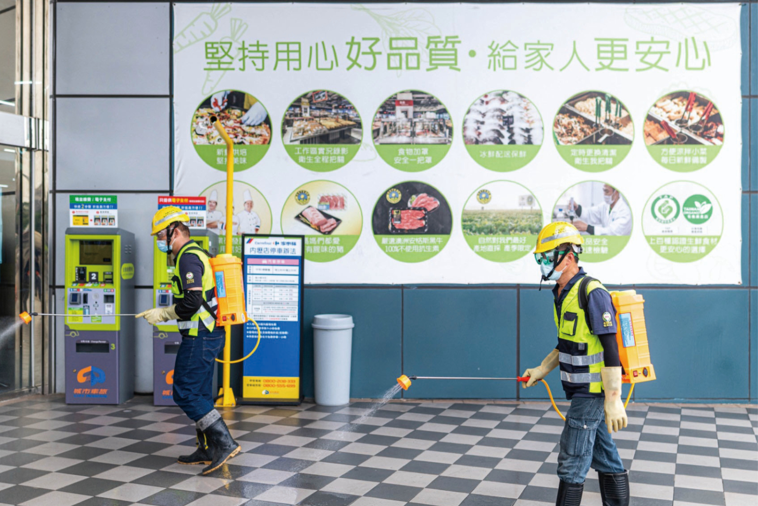 曾於服兵役時受國家栽培化學兵職能的桃園區莊敬里長高淞泰,憑藉己身環保消毒專業及資源,在桃園即時公布的確診案例疫調足跡處,不管是店家,抑或一旁的人行道路,都會看到他身著防護衣、肩負沉重的消毒工具,強忍高溫爆汗、無畏風雨,穿梭巷道,辛勞噴灑著消毒藥劑,一切只為減少里民暴露於感染風險之下。