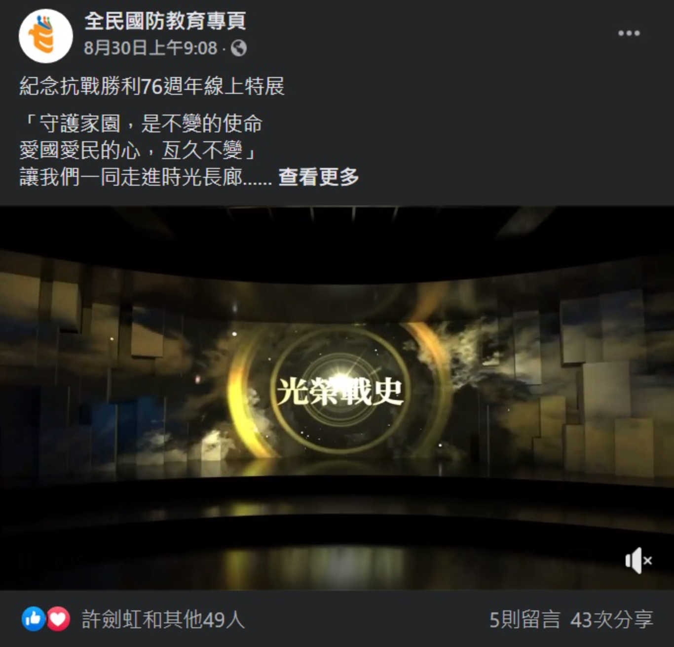 雖然因為疫情而取消實體慶祝活動,這是大家都能接受的正當理由,不過眷村的黃復興老兵、退將卻仍幹聲連連,因為改成線上之後,政府根本沒有用心宣傳,也沒有人願意分享、擴散,幾天下來按讚數竟然不到50個。甚至就連最多人關注的「國防部發言人」粉專,也未加入串聯宣傳。