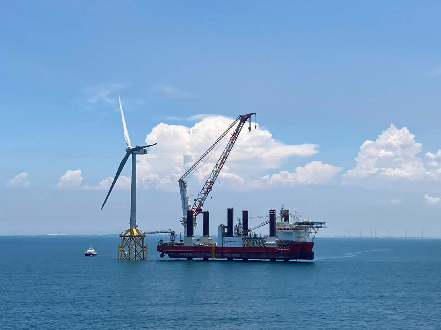 台電表示,去(2020)年全球疫情爆發,國內外離岸風電工程施作均受影響,台電施工團隊仍排除困難,於不利施工的冬季,出動大型支援船配合特殊動態補償舷梯,克服惡劣海象,今年順利完成海纜埋設、風機吊裝,截至8月27日完成全部風機併聯,是全台第二座順利完工的離岸風場,也是彰化外海首例率先併網的指標性工程。