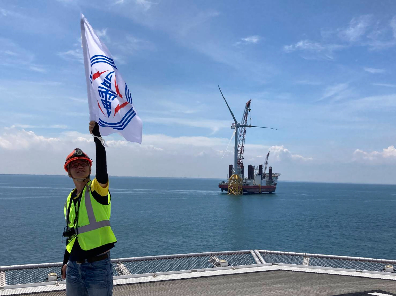 儘管去年冬季因東北季風影響,海象嚴峻危險,台電仍使命必達。為克服登塔作業因風浪過高無法進行,從新加坡緊急引進動態補償式舷梯(Gangway),確保技術人員安全順利登塔,並在109年底順利完成2部風機併聯發電。