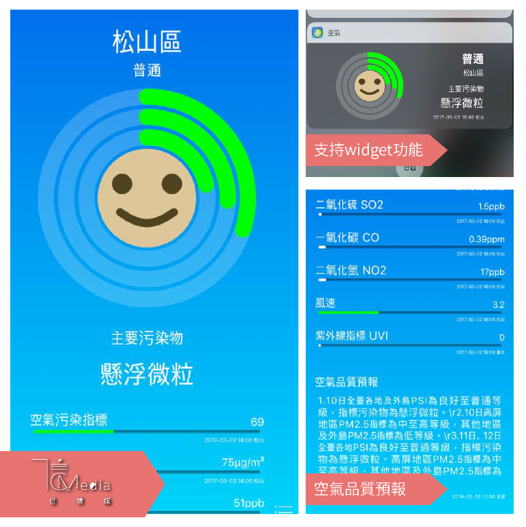 優點:更直覺畫的判讀空氣品質、支援widget功能