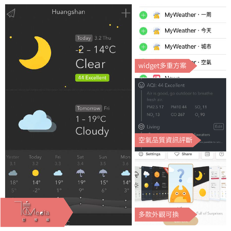 其他還有可以分享天氣小卡給朋友的功能、多款外觀主題更換等豐富功能,就給各位逐一去挖掘了。