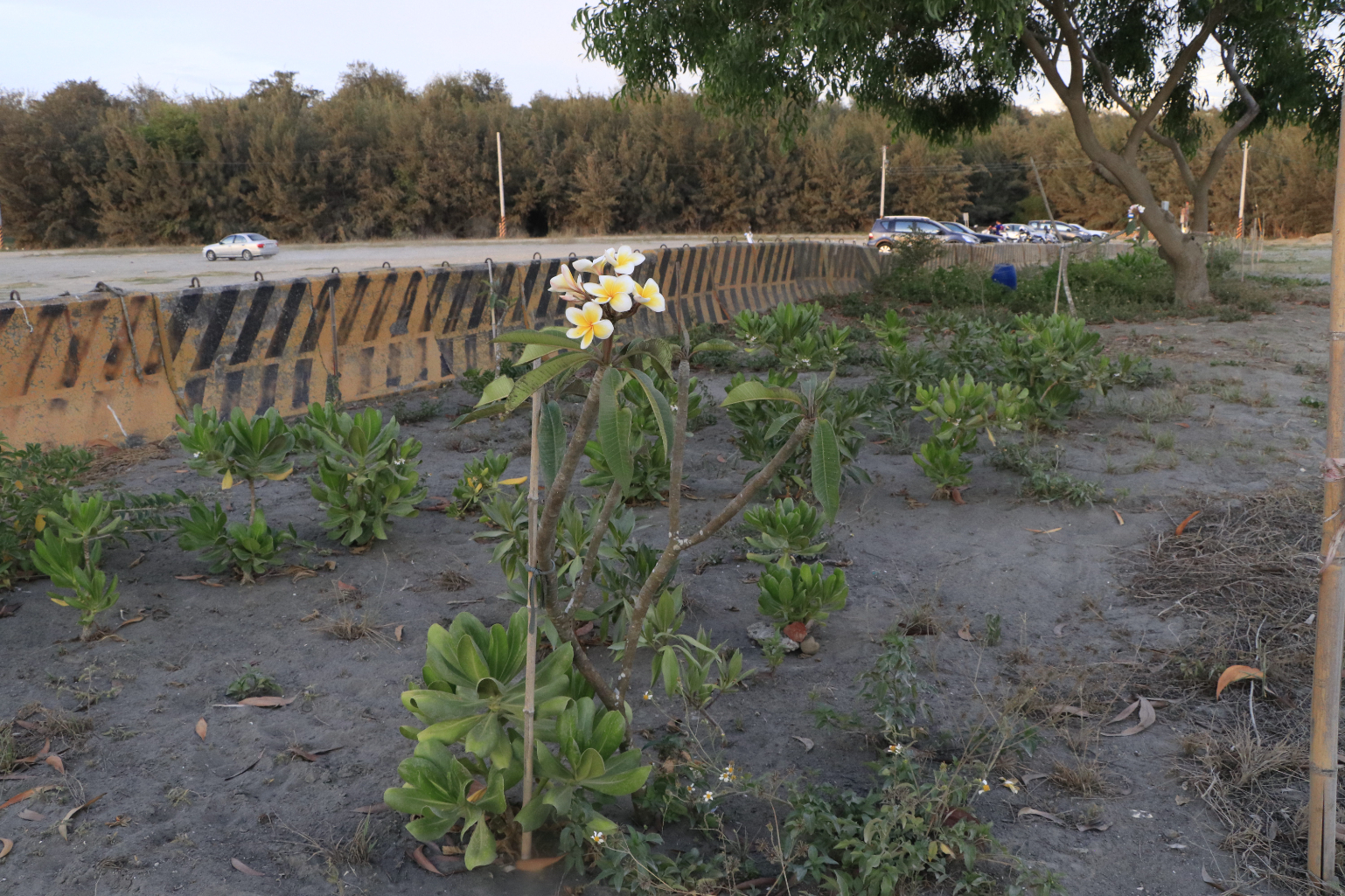 泳客「平哥」就是被兜起的愛好者之一。他與志同道合者組成的「魚蛙蟹海泳家族」,運動之餘也在海邊守望相助與淨灘,為當地年輕人上基礎救生課。認識盧靖穎後,手巧的平哥與夥伴們運用廢蚵棚,在虱目魚塭旁搭建鞦韆、賞鳥亭;一行人最近還在樹醫師的指導下,在沙灘種植兩千株耐旱的雞蛋花、瓊崖海棠等,盼以綠帶取代紐澤西護欄。