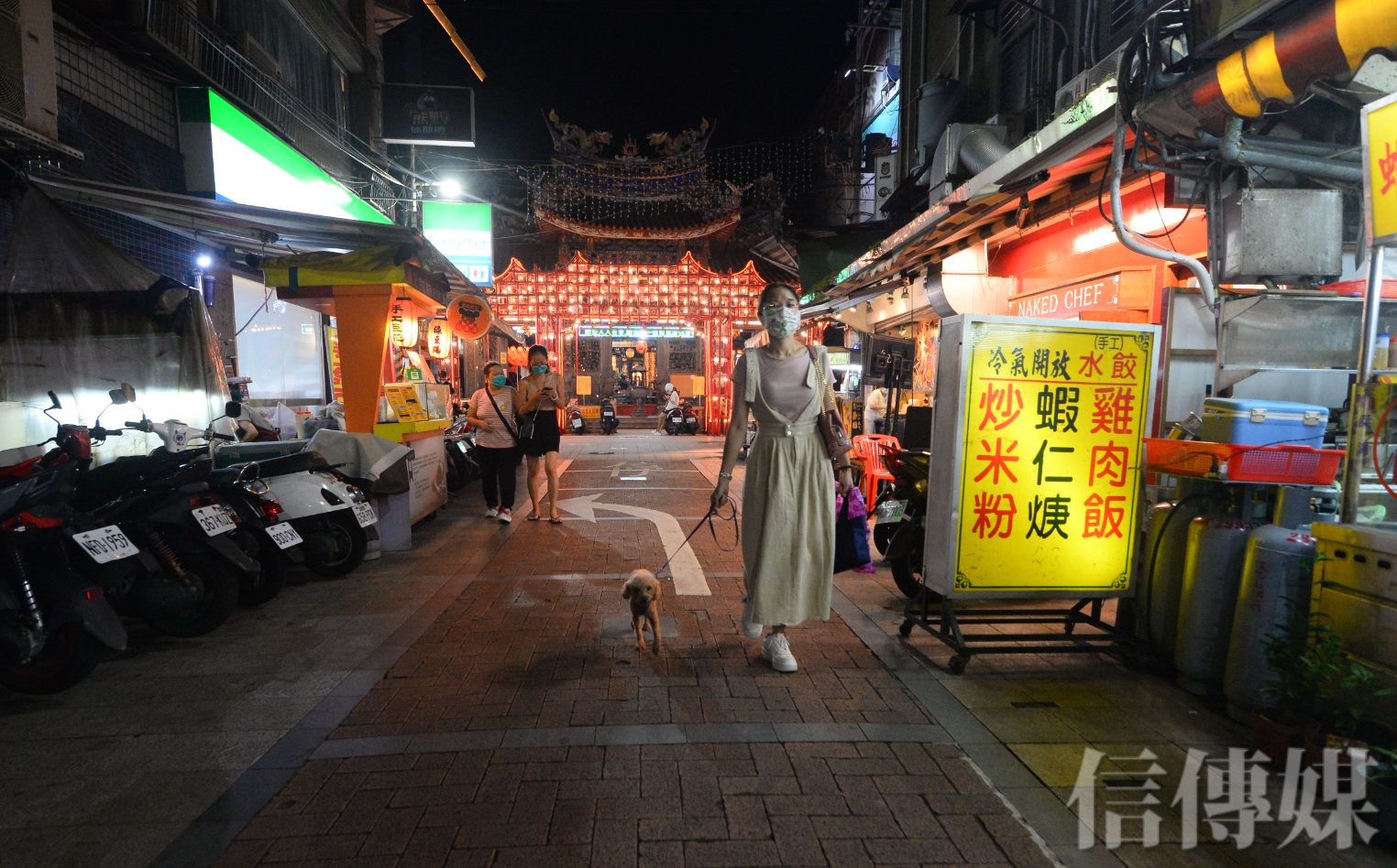 新北市府下令禁止內用後,傍晚新莊廟口夜市,人潮相對變得稀少。(攝影/趙世勳)
