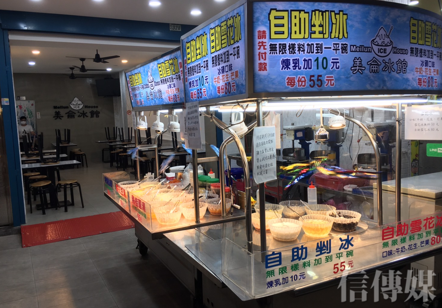 夜市內一間冰店由於9日開始禁止內用,桌椅再度收回。(攝影/趙世勳)