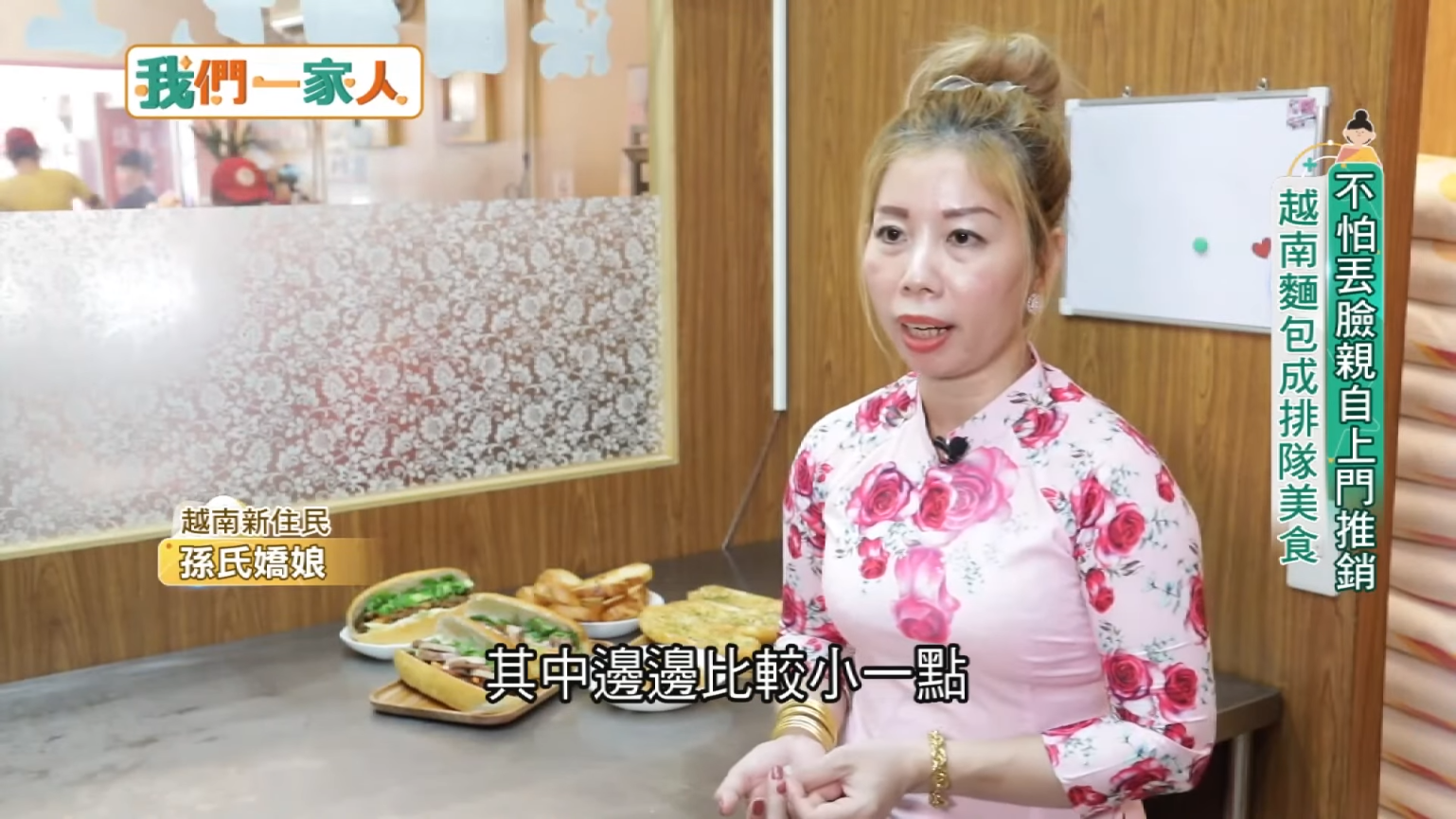 接下來這位主角孫氏嬌娘,原先在越南就是一名廚師,21年前來到臺灣後,開起越南小吃店,但因為小吃店要熬湯頭、備料,加上店員不好找,於是在開店十多年後,決定轉攻越南口味的法國麵包。開在臺中第二市場附近,短短兩年內,就成為熱門名店,甚至有客人是拖著行李箱,上門採買。