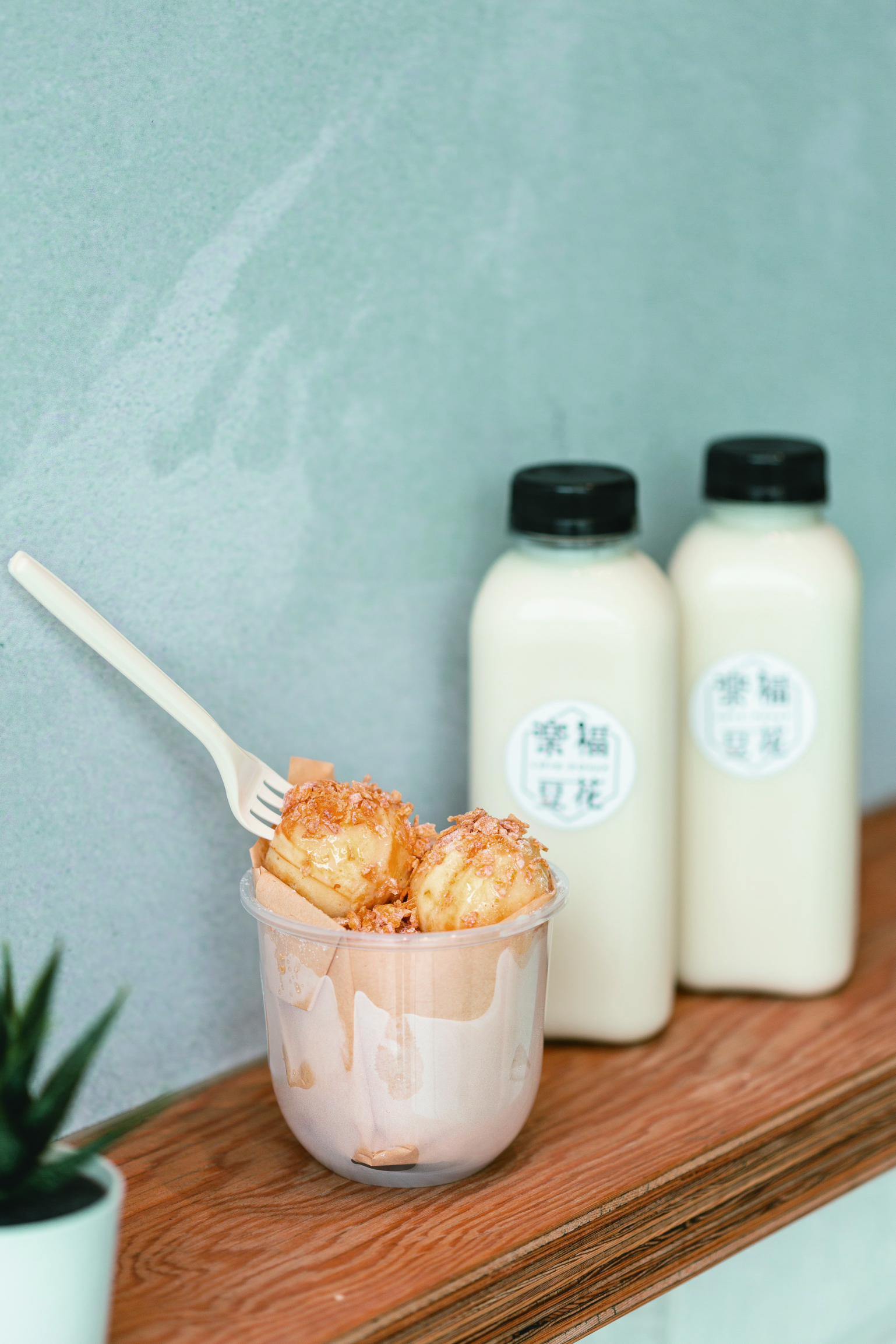 「澎湃豆花」對食材講究,以標準化製程,製作真材實料的美味,更大方提供無限免費續加服務,要讓客人吃得健康又盡興。「楽福豆花」傳承老師傅的手藝,以真功夫的豆花、手炒糖水為主打,融合古早味與創意配料,要用溫暖的心意獻給來客。