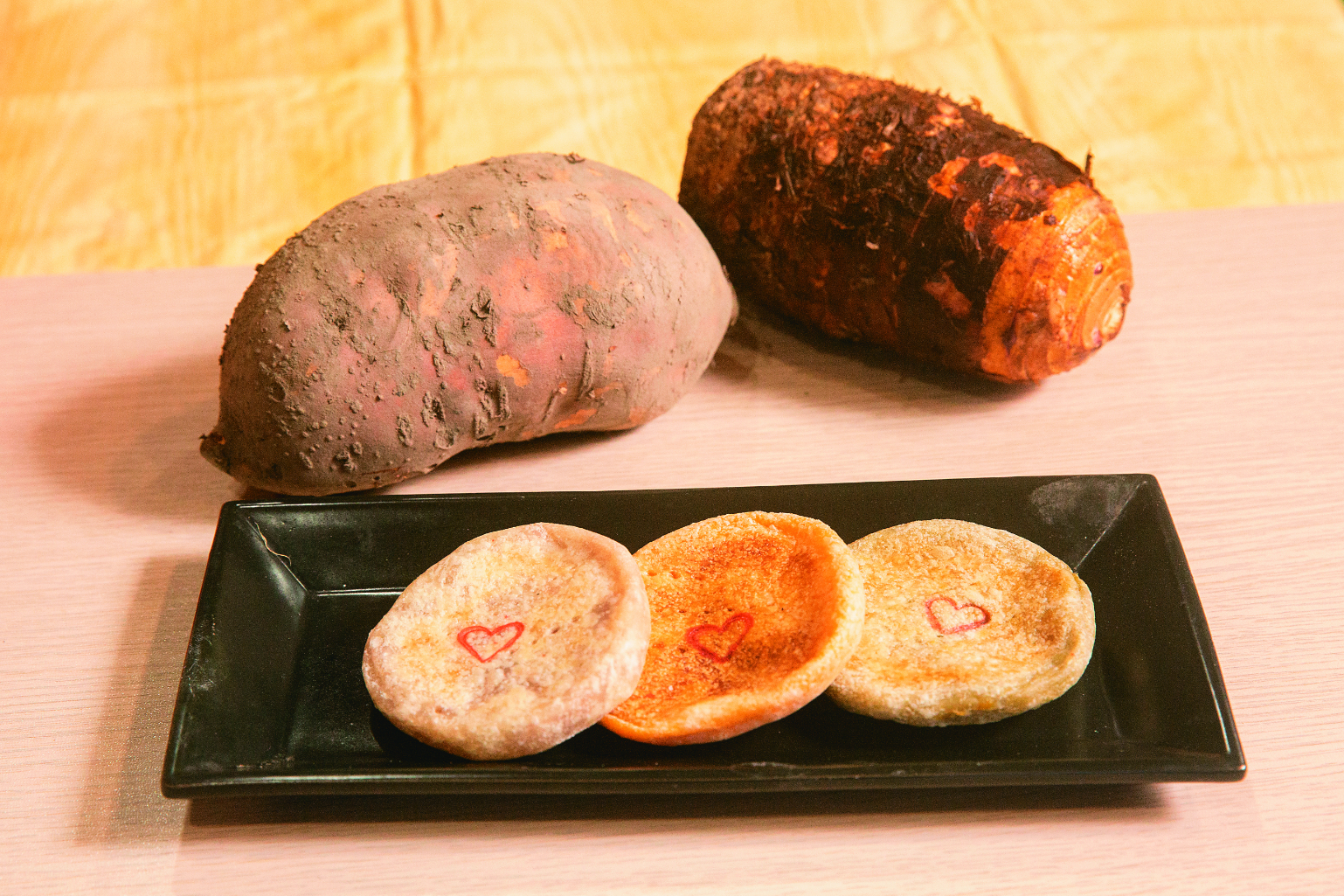 除了講究製作工序,陳媽媽認為,食材品質也是月光餅美味的關鍵。舉例而言,地瓜口味的月光餅,以果肉鬆軟綿密的台農57號地瓜製成;芋頭口味則堅持選用口感細緻、風味香濃的大甲芋頭。儘管使用高品質食材不免提升製作成本,卻是陳媽媽製作月光餅時的不變堅持。而除了地瓜、芋頭口味之外,由於大溪是許多日本人喜愛的旅遊勝地,陳媽媽也順勢推出採用有機黃豆為原料,創新版抹茶口味月光餅。「台灣人最常買的還是地瓜口味;日本遊客則大多選擇抹茶口味。」陳媽媽分享道。