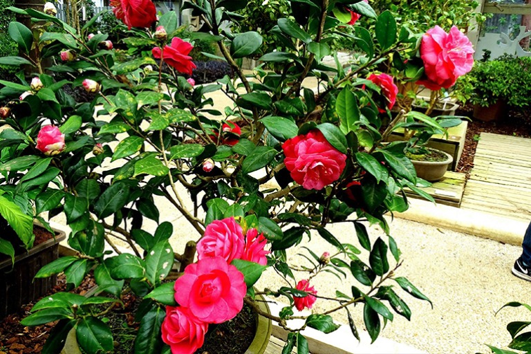 陽明山上的花卉試驗中心從1949年即展開茶花栽培與研究工作,蒐集超過500種、8000餘株茶花,為全台規模最大的茶花展,已於2/8開展將持續至3/19。花卉試驗中心位於仰德大道四段,中心內有茶梅區、山茶杜鵑區、茶花木棧道及各式茶花品種區,幾乎每天都有新人到中心拍攝婚紗。