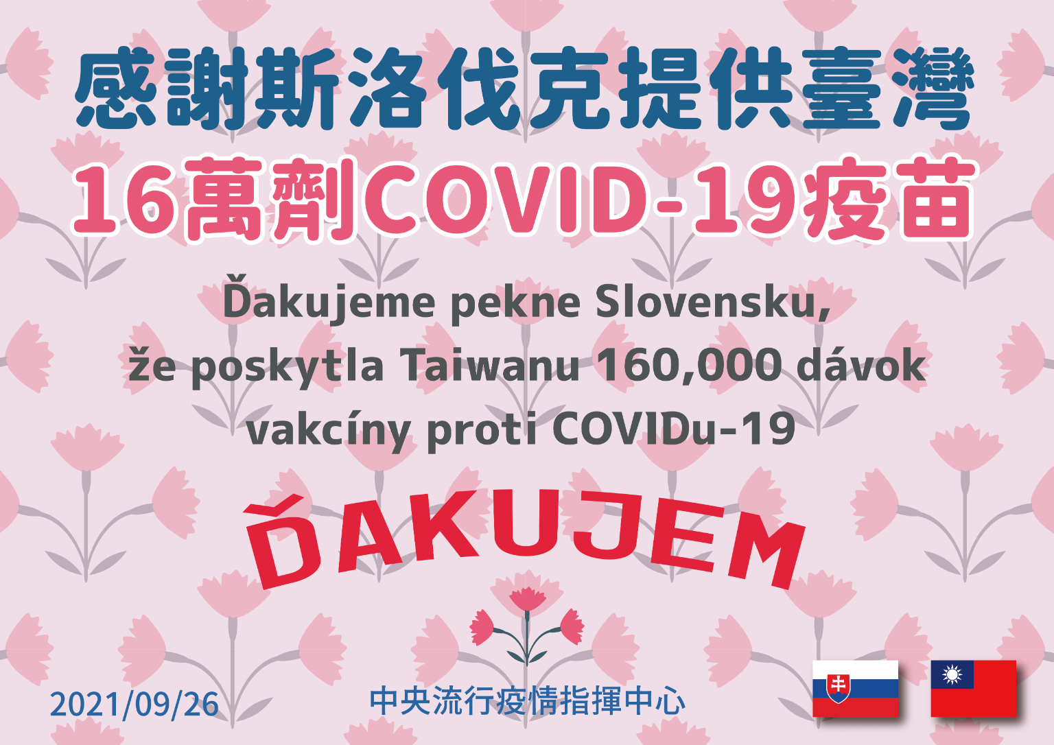 指揮中心說明,全球面對疫情肆虐,國際社會竭盡一切努力,透過相互援助遏止疫情蔓延,斯洛伐克為感謝我國去年捐贈70萬片口罩之情誼,此時伸出援手提供並加碼捐贈這批COVID-19疫苗,讓我國感受到國際間正向循環的良善力量,此批疫苗將有助我國提升疫苗覆蓋率,指揮中心謹向斯洛伐克政府與人民致上誠摯謝意。