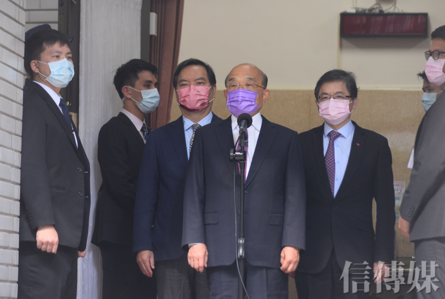 蘇貞昌提前在上午8時進入議場,約在8時40分在議場後門接受媒體聯訪,被問到在野黨杯葛議事是否恰當等問題。蘇貞昌抨擊藍營指出,阻擋或不讓他報告,是妨害民眾知的權利,希望大家都能團結一致向前進,不要讓政府空轉。