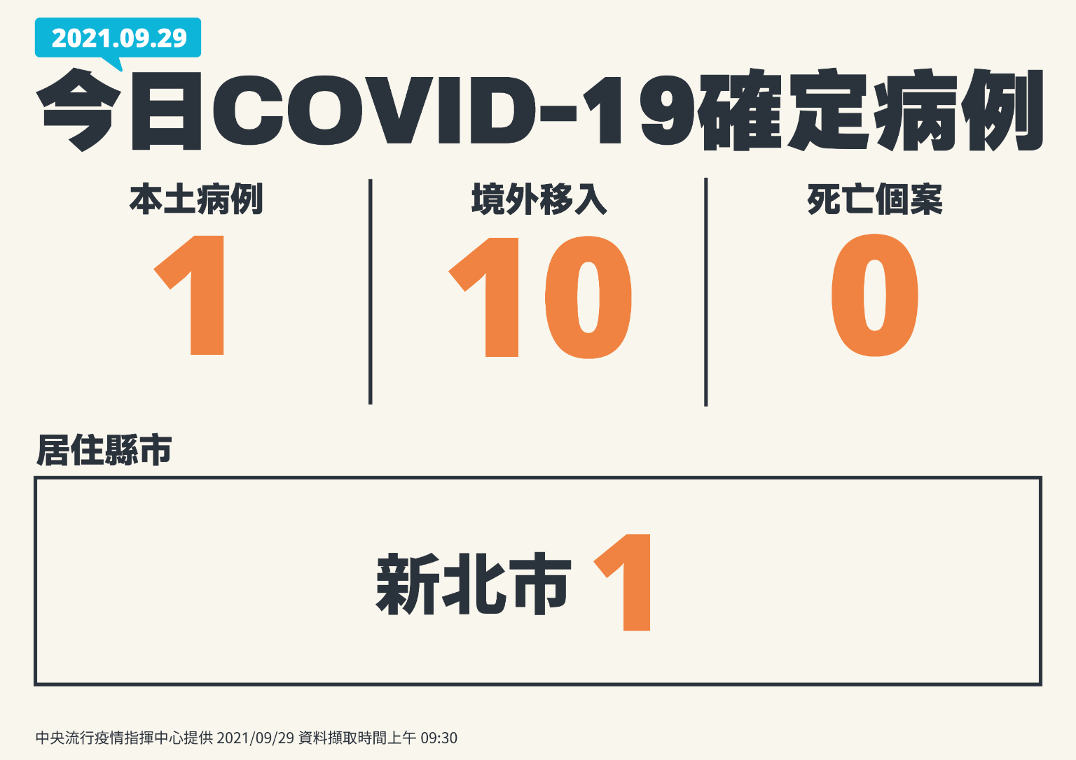 中央流行疫情指揮中心今(29)日公布國內新增11例COVID-19確定病例,分別為1例本土及10例境外移入;另確診個案中無新增死亡。