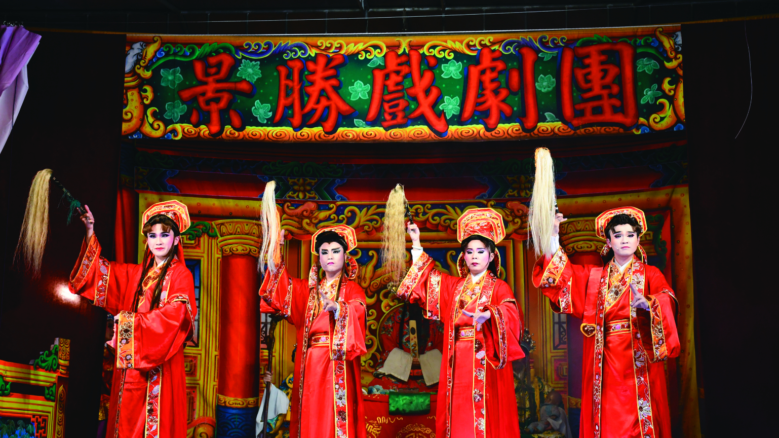 「平安戲」作為酬神的重頭娛樂,更是結合民間信仰與傳統戲曲的重要藝術表演。一般會從白天演到晚上,早上的劇碼以「扮仙」為主,例如八仙、財神爺等,營造出眾神前來庄頭,一起參與盛事的氣氛。