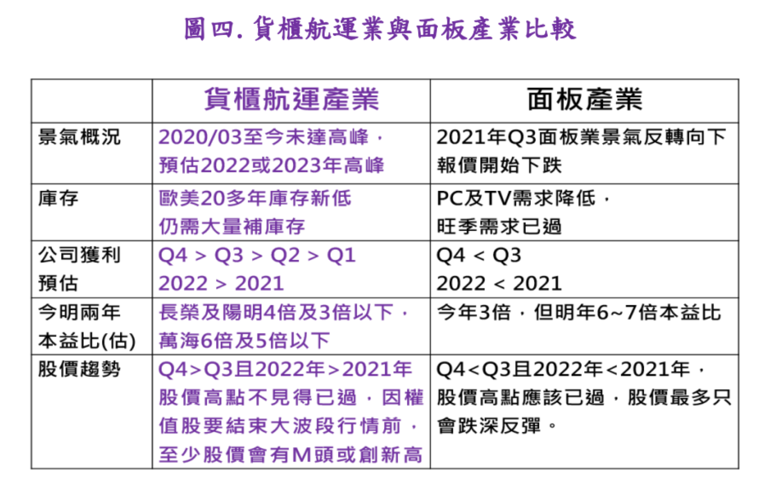 由於營收是P x Q,亦即未來運價下跌,但運量大增下,2022年的營收及獲利也不會下降,從下表三我們預估2022年稅後EPS超過50元,也不是如面板股景氣從Q3往下。惟市場空方一直用假訊息來打壓貨櫃航運,包含3天跌掉3個月運價漲幅,使得上週五貨櫃航運股股價跌破兩個月打底的支撐區;但是打趴貨櫃航運股,也會打趴其他傳產漲價股,也會打趴台股大盤及信心。