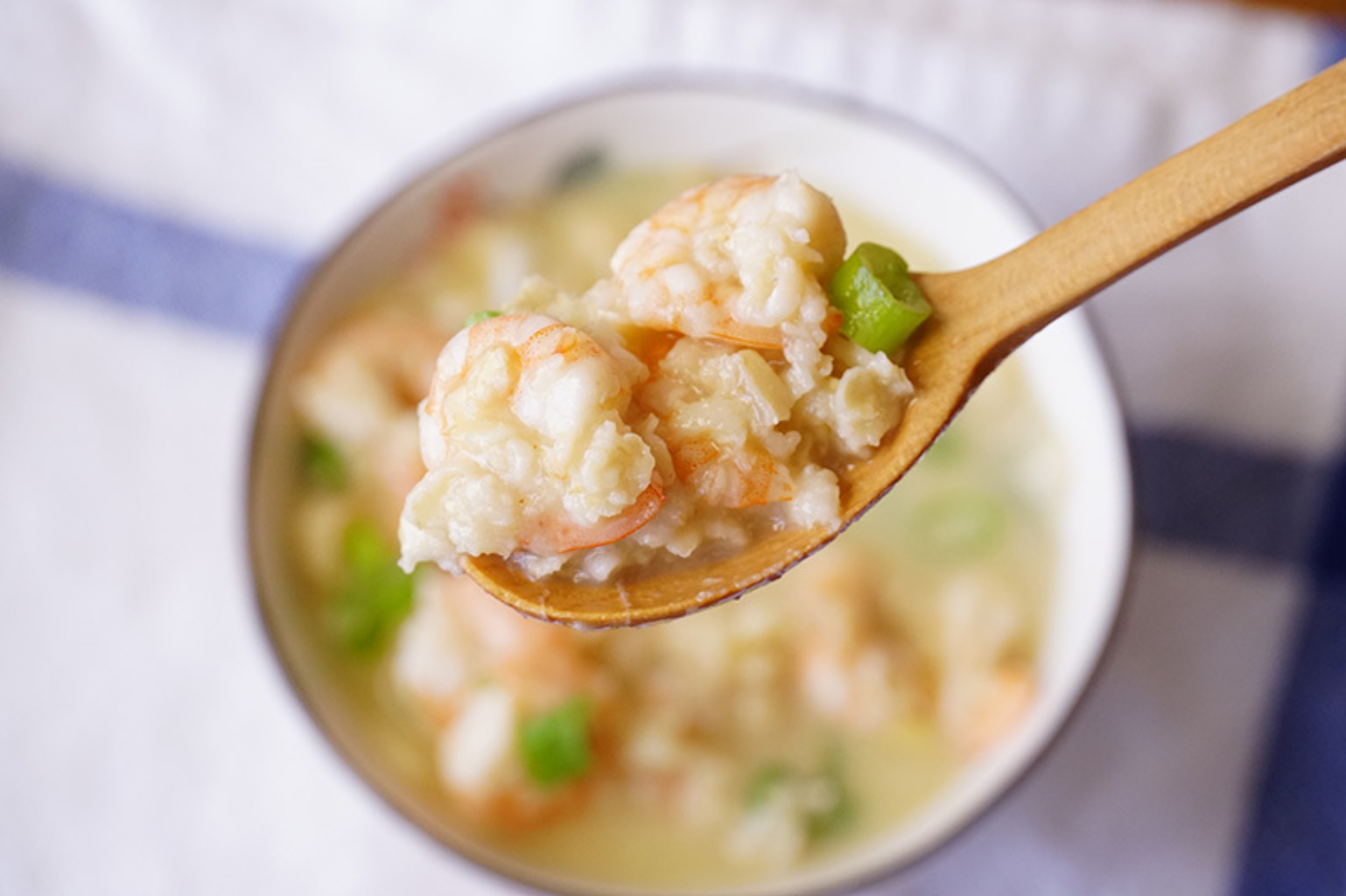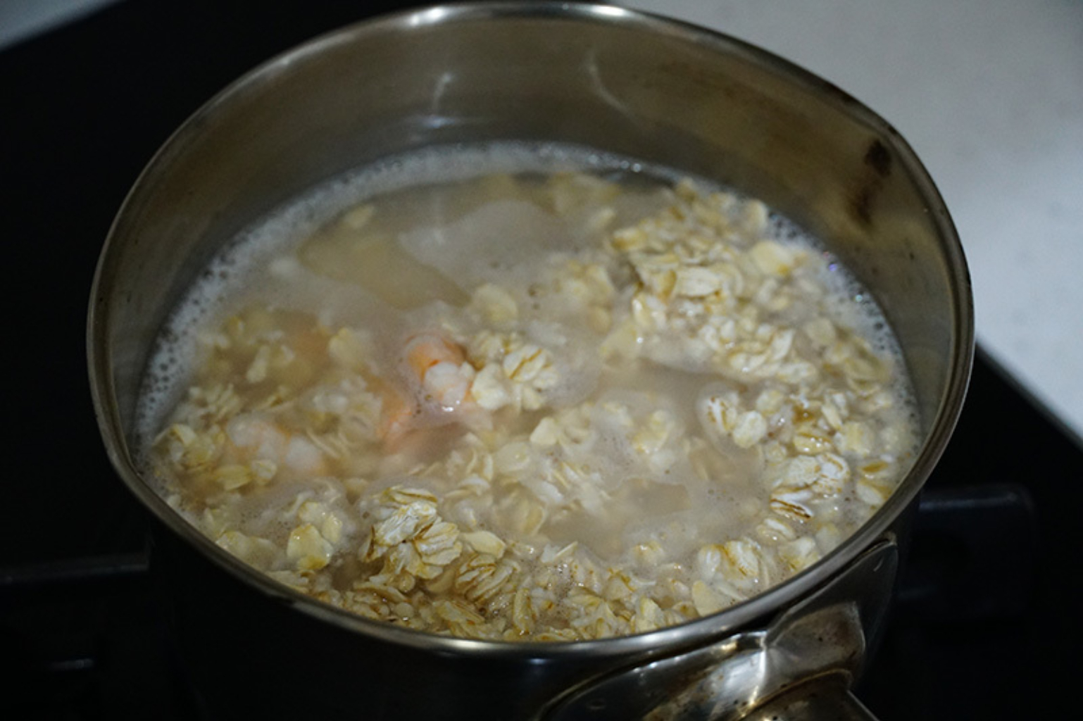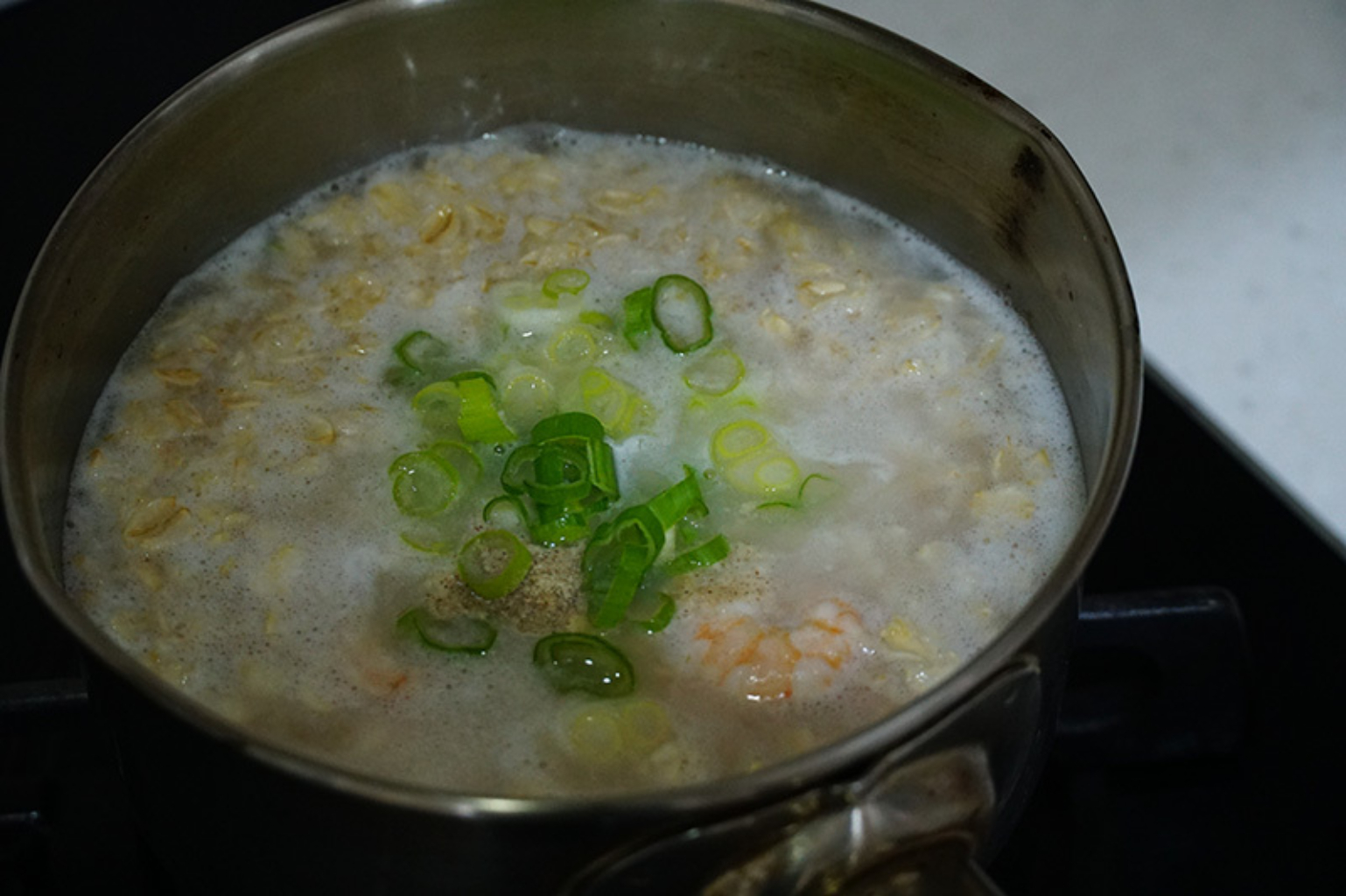簡單好吃營養的蝦仁燕麥粥就完成啦!本來以為會沒什麼味道,沒想到很鮮甜。