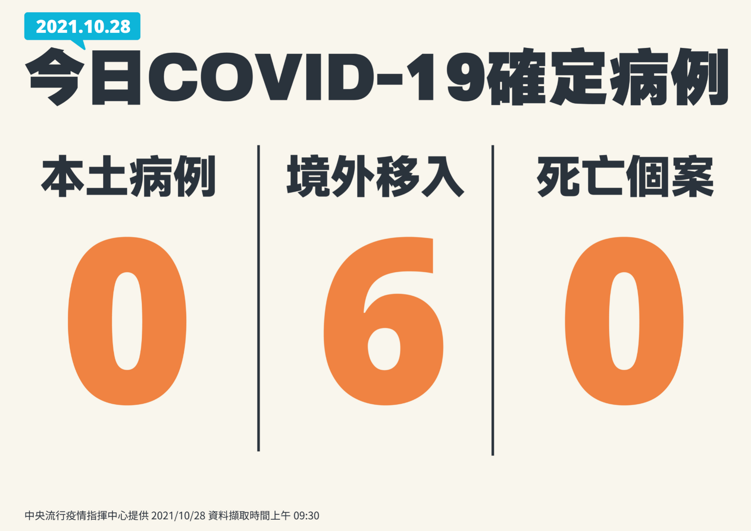 中央流行疫情指揮中心今(28)日公布國內新增6例COVID-19確定病例,均為境外移入;另確診個案中無新增死亡。