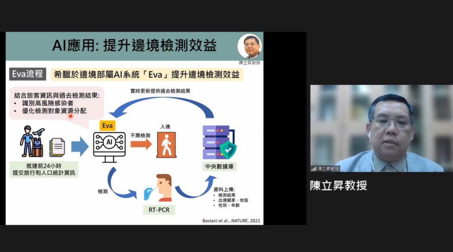 針對疫情極低風險國家,若施打率達70%以上則可考慮入境免隔離,施打率介於40%至70%則可考慮縮短居家隔離檢疫時間。台北醫學大學口腔醫學院副院長陳立昇在「新冠肺炎防疫科學」線上直播中分享,「AI不論在在流行病的評估、檢測、診斷治療、疫苗藥物研發或是未來疫情的預測上,都有很大的幫助。」