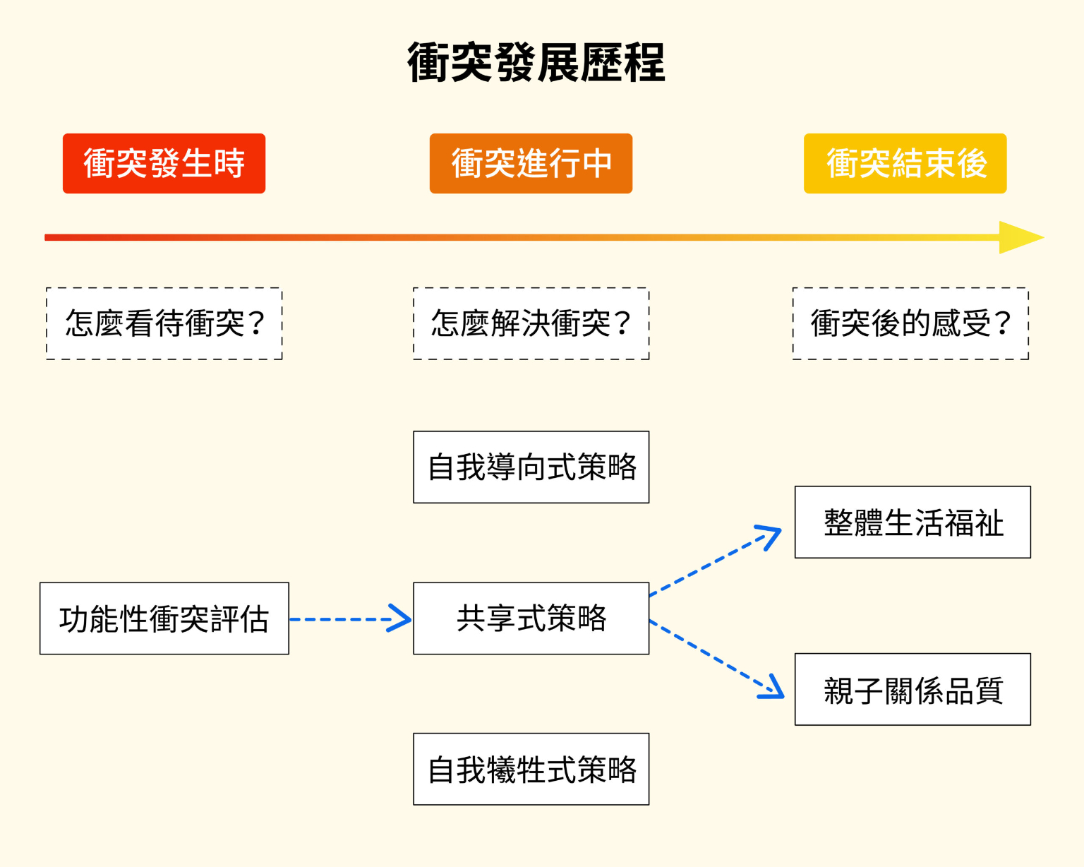 越常從「功能性觀點」來看待親子衝突的子女,越傾向採取「共享式策略」,他們在親子關係、個人幸福感都比較好。