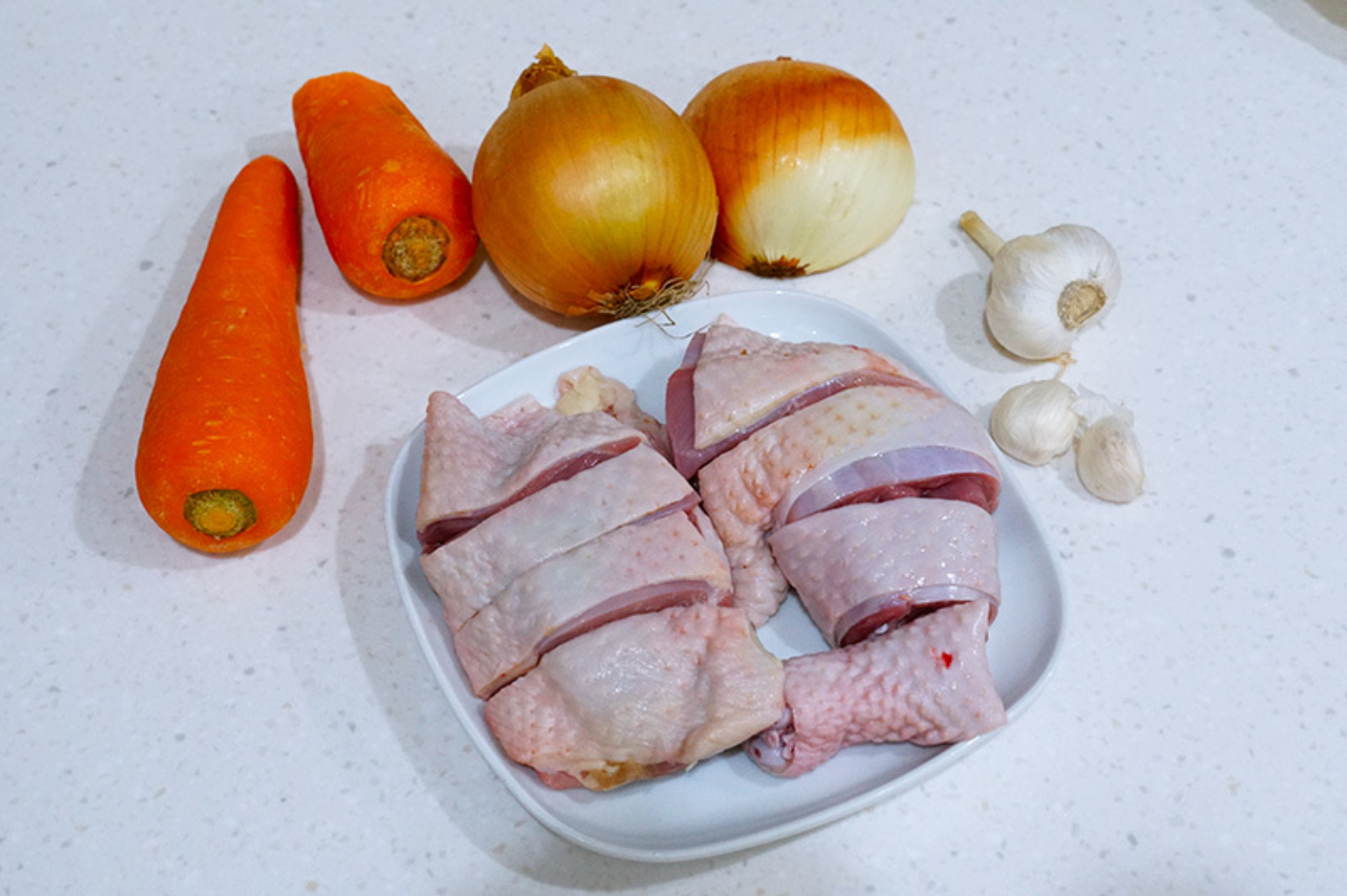 洋蔥雞湯的食材準備相當簡單,但特別注意的是,雞腿建議買「帶骨切好」的雞腿肉。超市一班會賣這種雞腿,如果在傳統市場購買,建議請攤主幫你剁好。要自己剁得漂亮不容易。
