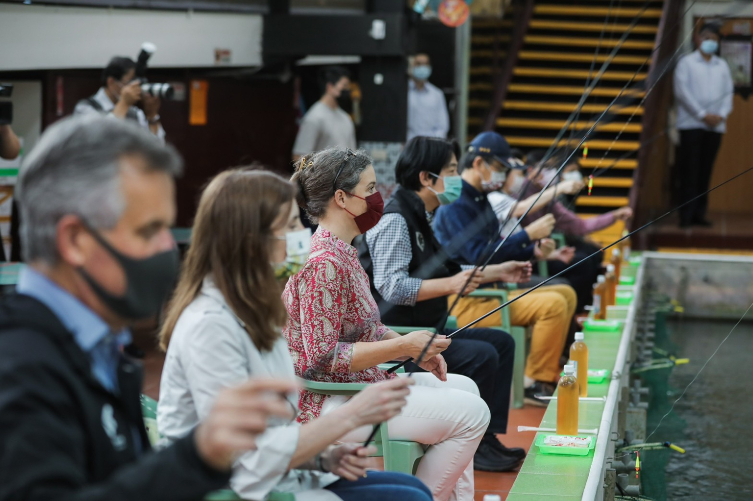 日前賴清德邀集多國代表體驗釣蝦樂,出席者個個大有來頭,包括美國在臺協會AIT處長孫曉雅、英國在台辦事處代表鄧元翰、日本台灣交流協會代表泉裕泰伉儷、澳洲駐台台北露真怡、印度台北協會會長戴國瀾伉儷。賴清德除介紹釣蝦屬於台灣特有休閒文化,希望讓代表們體驗、交流外,也當面感謝美國與日本慷慨捐贈疫苗。