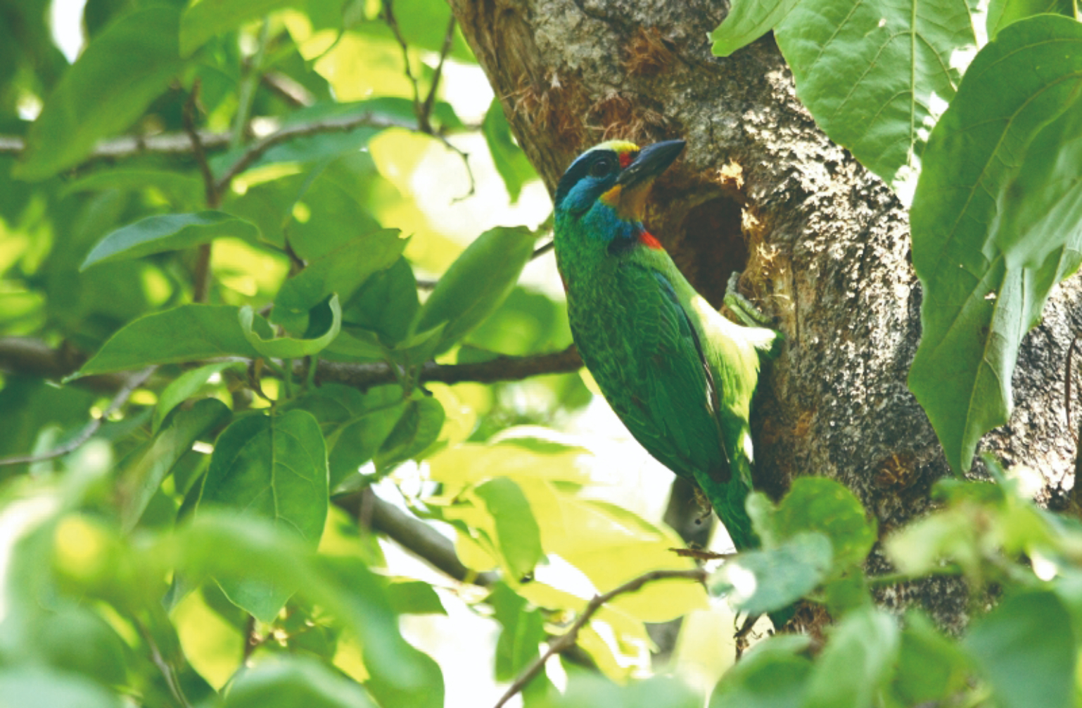 除了五色鳥,台北植物園因植物多樣性所形成的豐富生態環境,也吸引多種留鳥如綠繡眼、樹鵲、白腹秧雞、夜鷺、黑枕藍鶲在此聚集。找個時間來植物園散步,看鳥類在林間跳躍覓食、築巢,在不驚擾牠們的距離中觀察,體會鳥類與你我在城市中共生的樂趣。