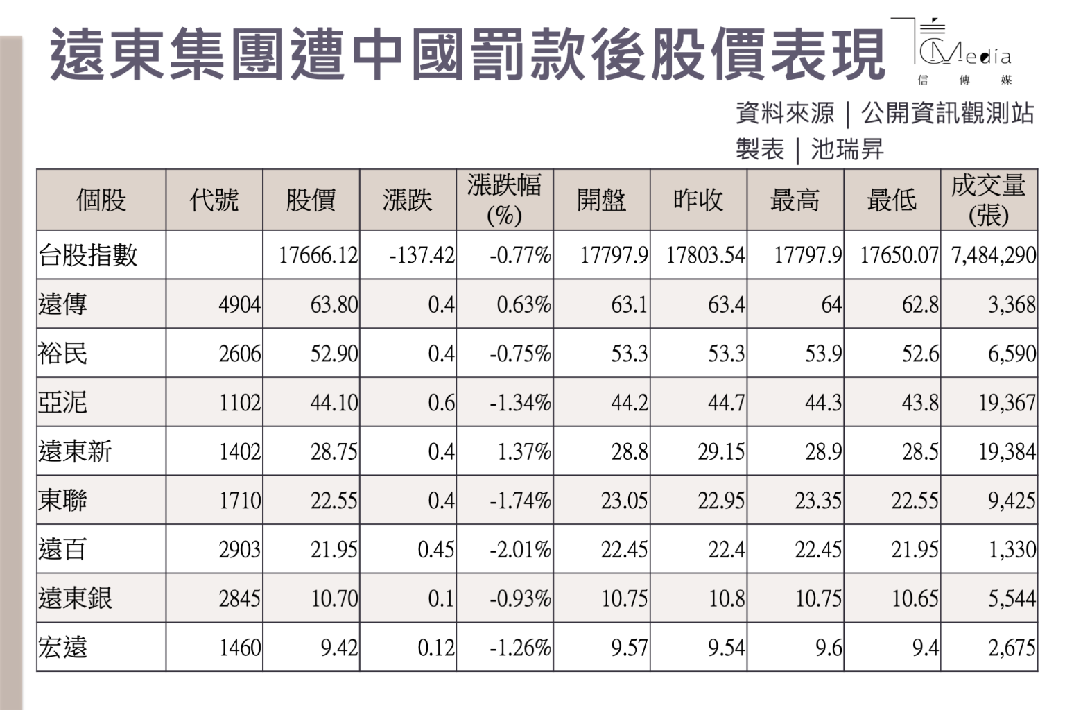 遠東集團在台股有遠傳、裕民、亞泥、遠東新、東聯、遠百、遠東銀等23日股價都受影響