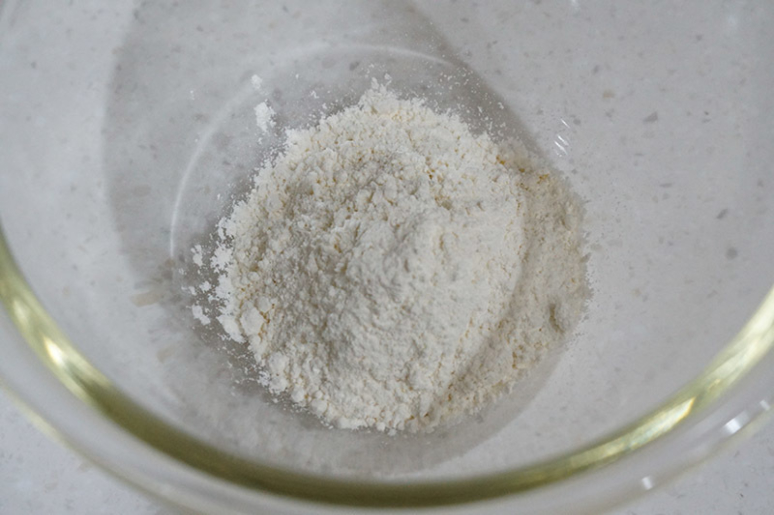 首先來製作蛋餅皮。取一大碗。加入低筋麵粉40~50公克。