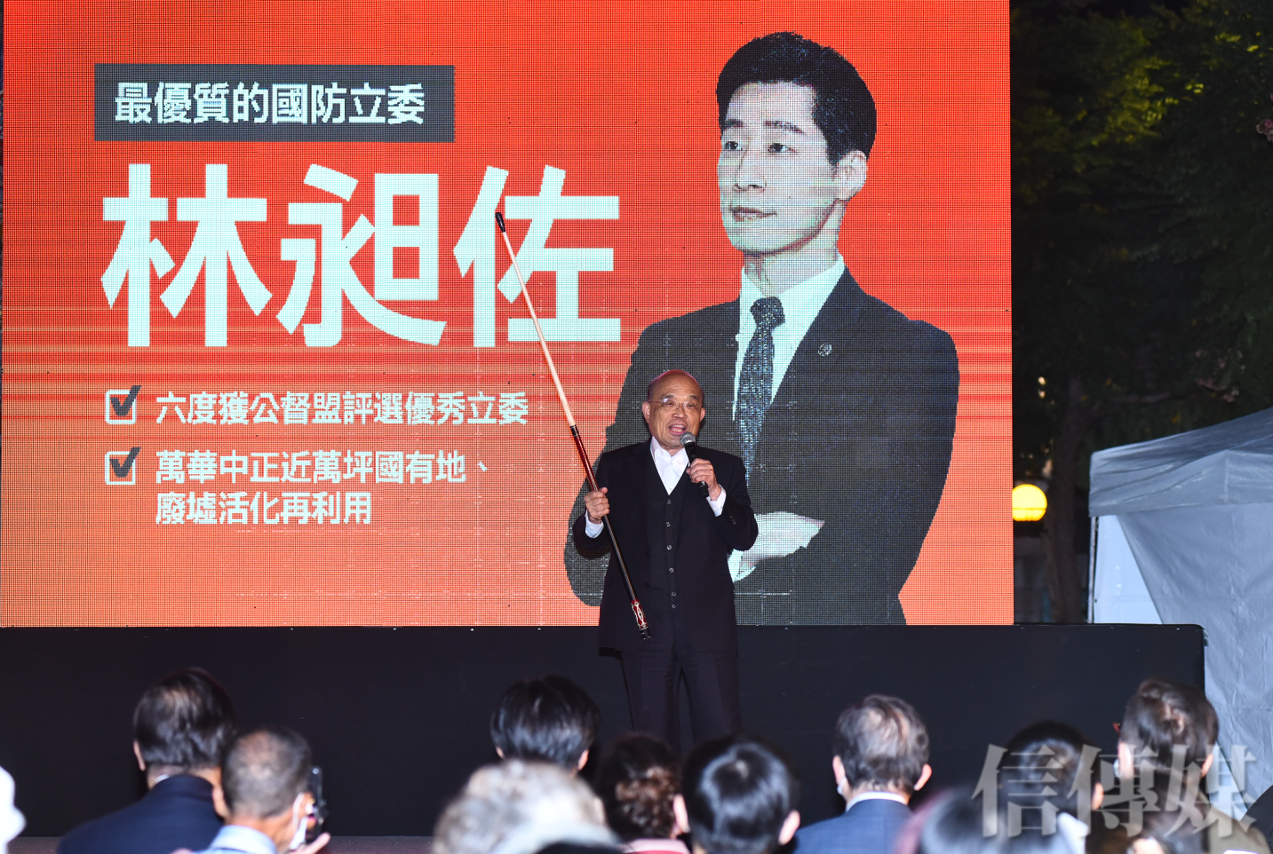 賴清德25日在台上讚美林昶佐在國際上勇敢發聲、自信前行。蘇貞昌也接著表示,林昶佐很關心萬華中正居民,也爭取了很多,尤其這次疫情爆發在萬華林昶佐在第一時間就跟部會聯絡,並在短時間內控制好。