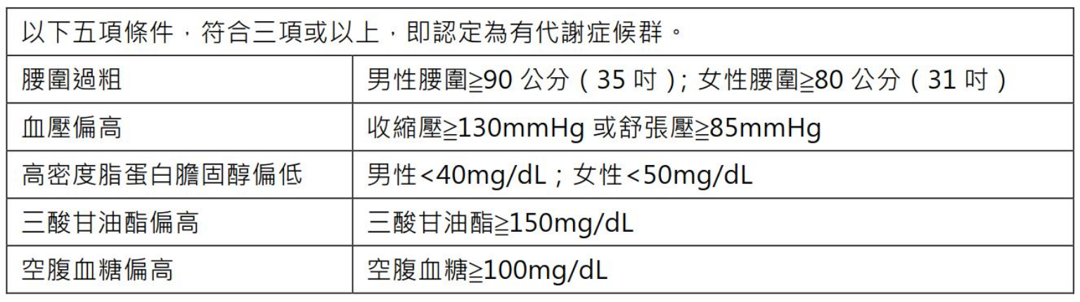 1分鐘自我檢測是否有代謝症候群。(資料來源:衛生福利部 代謝症候群學習手冊)