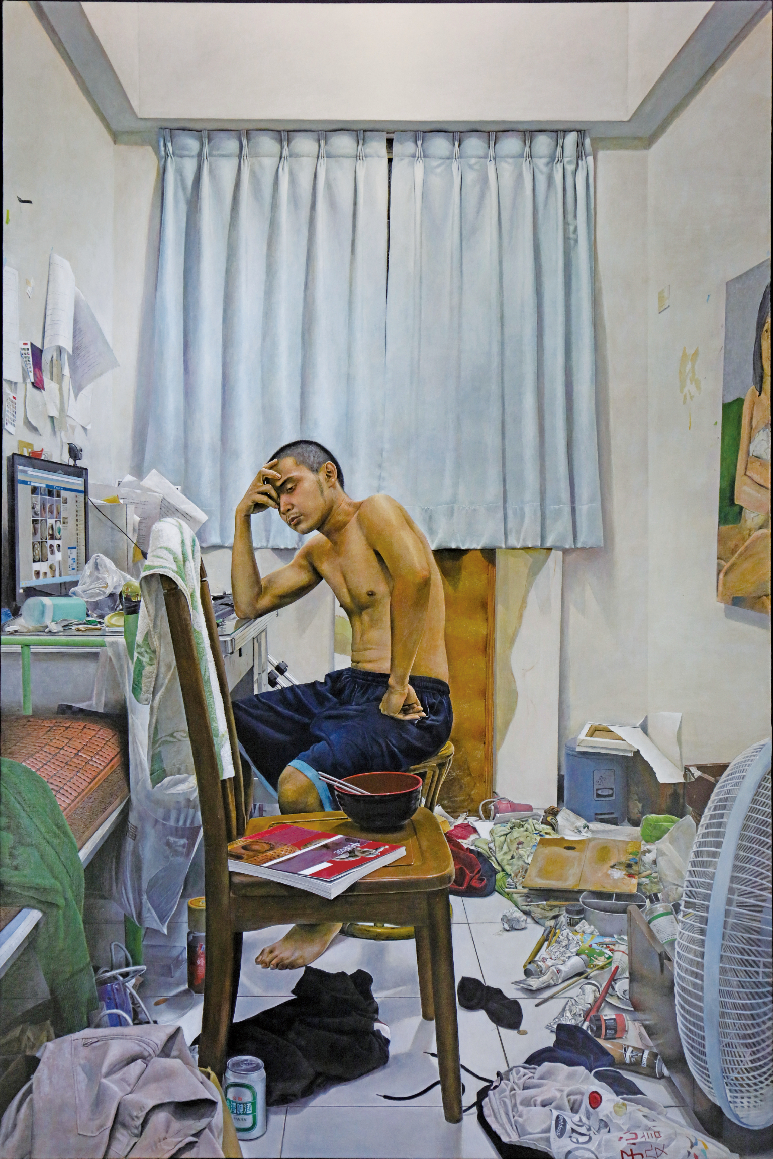 「自強124」得獎作品,主題是一個年輕人及他的房間,畫中該名青年是他的國高中及大學同學,當時兩人同為美術系在外租房,他描繪同學房間裡的景物,內容表達年輕人在生活的壓力下,對於貧困世代充滿焦慮不安,追求藝術的夢想,是否是遙不可及的奢想?