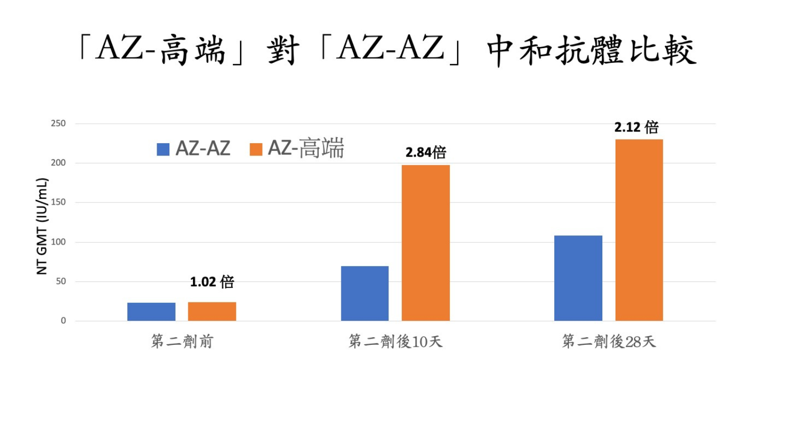 長庚:「AZ+高端」中和抗體效價比2劑AZ高出2.8倍