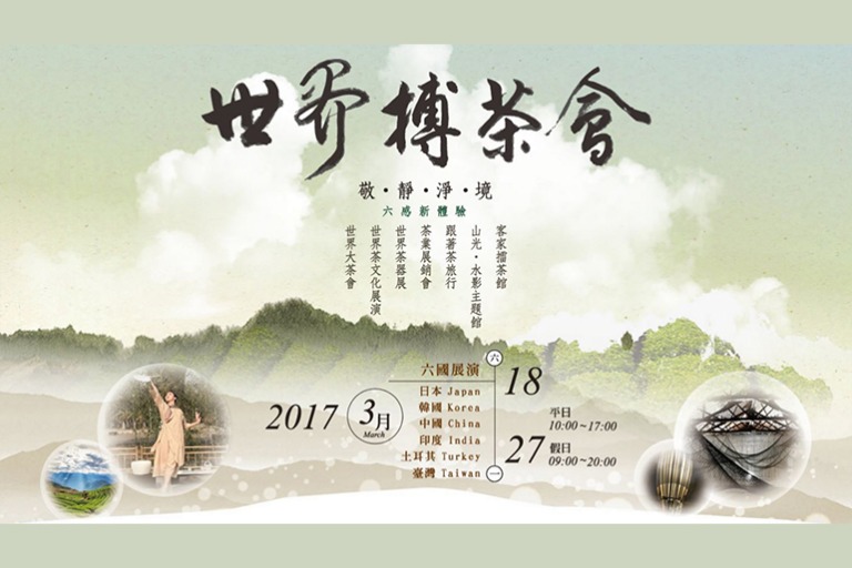 「2017 世界搏茶會」以茶會友、為產業增能,探尋世界茶與生活結合的文化藝術之美。純手工打造品茗空間展現茶禮、茶樂、茶書、茶畫、茶詩、茶境六藝情境;戶外茶屋、茶席與大自然結合,錯落於場域之中,為品茗帶來恬靜氛圍,讓來賓在其中體會茶文化的「敬、靜、淨、境」六感魅力!同時達到提升嘉義的能見度與產業文化的深廣度。