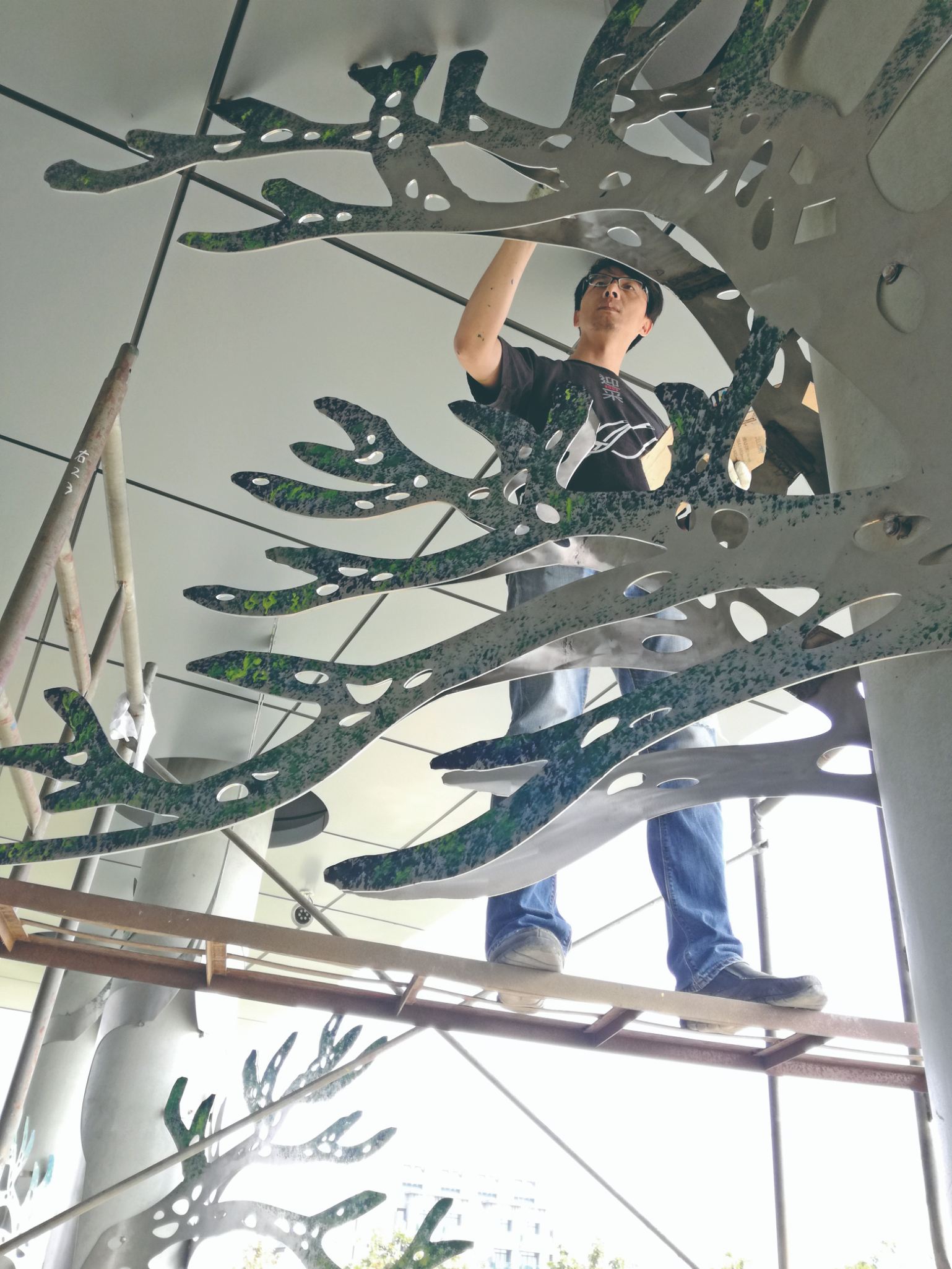 「想住得離爸媽近一點。」認同妻子這個想法後,2007年就搬來臺中定居至今,郭國相回憶,當時孩子不到3歲,今年都已經上高中了!實踐大學工業產品設計系畢業的郭國相,來臺中後進入傳統產業公司,擔任開發設計部經理。與臺北設計公司相比,工作型態的不同,許多想法與熱情無處釋放,郭國相不希望工作淪為糊口的工具,便在下班時間經常與妻子思考從其他管道實踐理想,這份有志難伸的苦悶,成為投入公共藝術創作的契機。