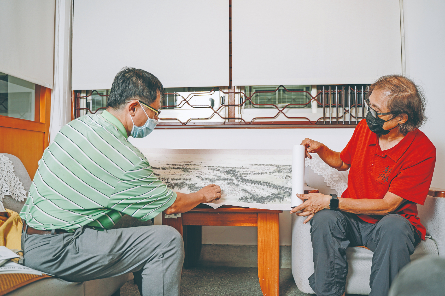 與總務處張志遠組長(左)攤開陳其寬建築師所繪製的構想圖,與實際規劃相差無幾。.jpg)
