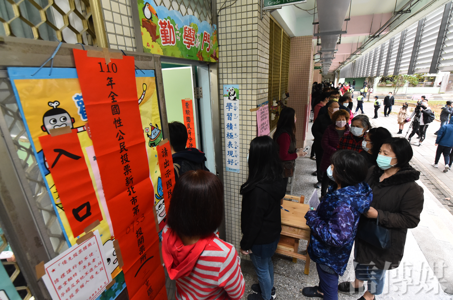 儘管氣溫偏低,一早8點不到就有民眾陸續前往投票所排隊,國民黨黨主席朱立倫現身新北市三重區五華國小,跟著排隊人群量測體溫等待投票,隨後他投下四張公投票後,接受媒體記者聯訪,表示天氣雖冷,但還是要呼籲選民出來踴躍投票。