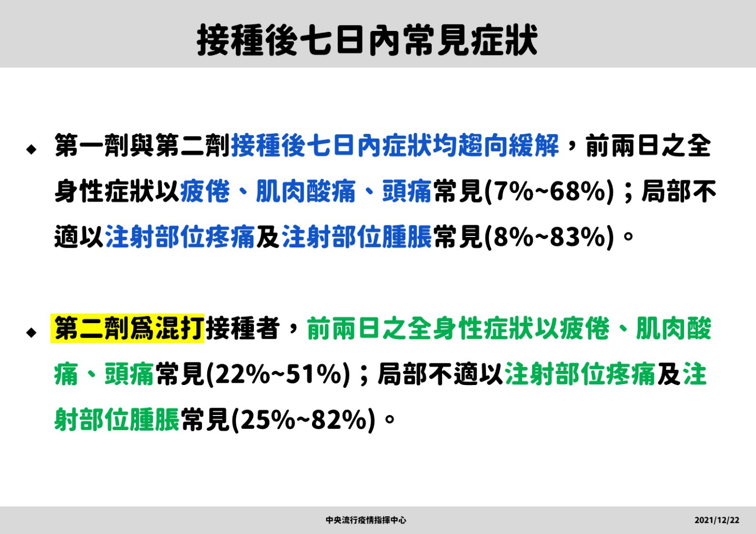 指揮中心再次呼籲,民眾應落實手部衛生、咳嗽禮節及佩戴口罩等個人防護措施,減少不必要移動、活動或集會,避免出入人多擁擠的場所,或高感染傳播風險場域,並主動積極配合各項防疫措施,共同嚴守社區防線。