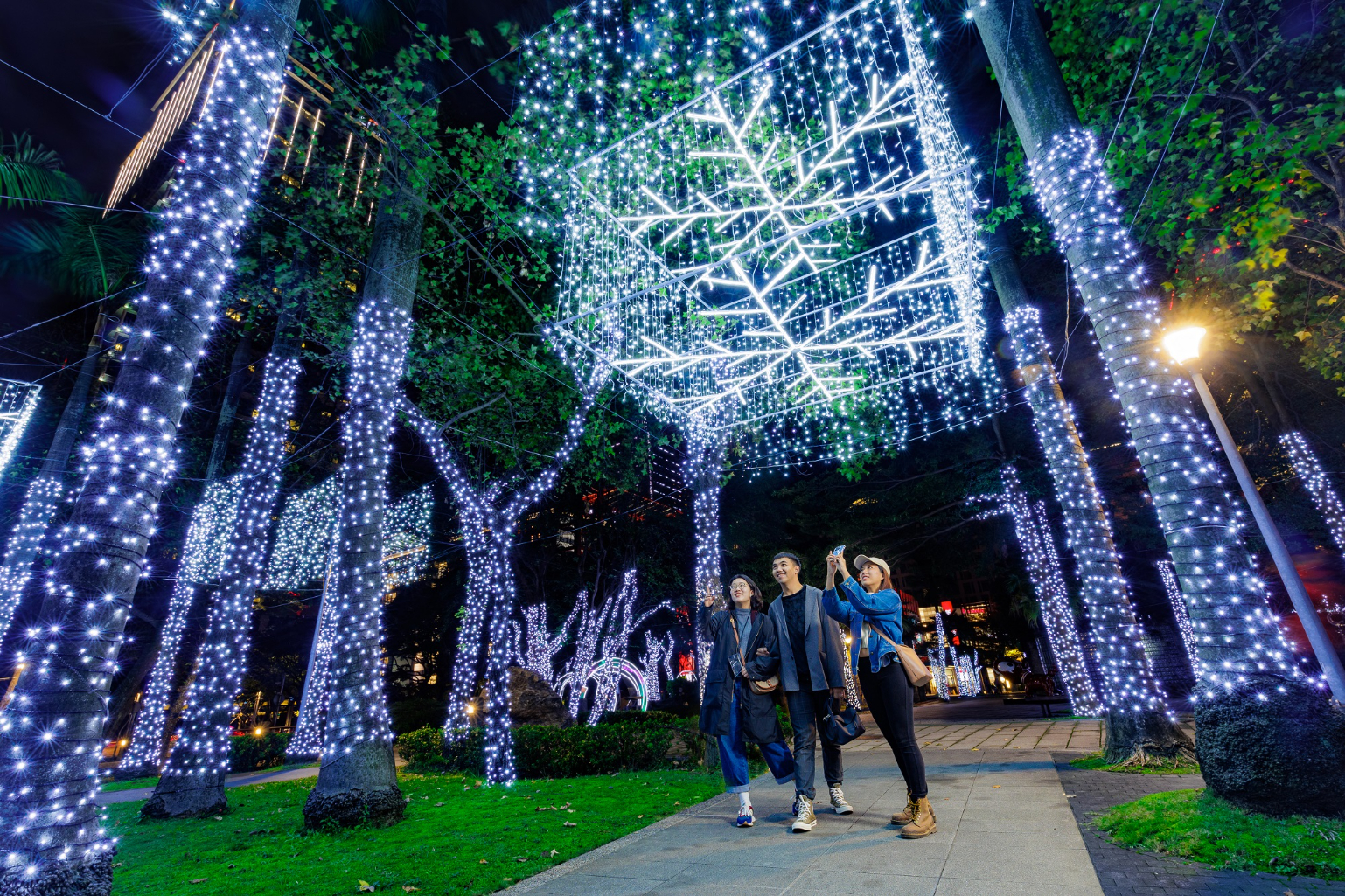 至於南港區則主打互動感強烈的裝置,現場燈牆會隨著耶誕音樂跳動,與民眾展開一場燈光冒險;信義區的東門廣場與松壽公園垂掛著銀白燈光,走入其中彷彿鑽入雪白國度,浪漫無比;文山區則在纜車貓空站外的景觀台,以金黃色的暖調燈光,象徵著擁抱台北的雙手。