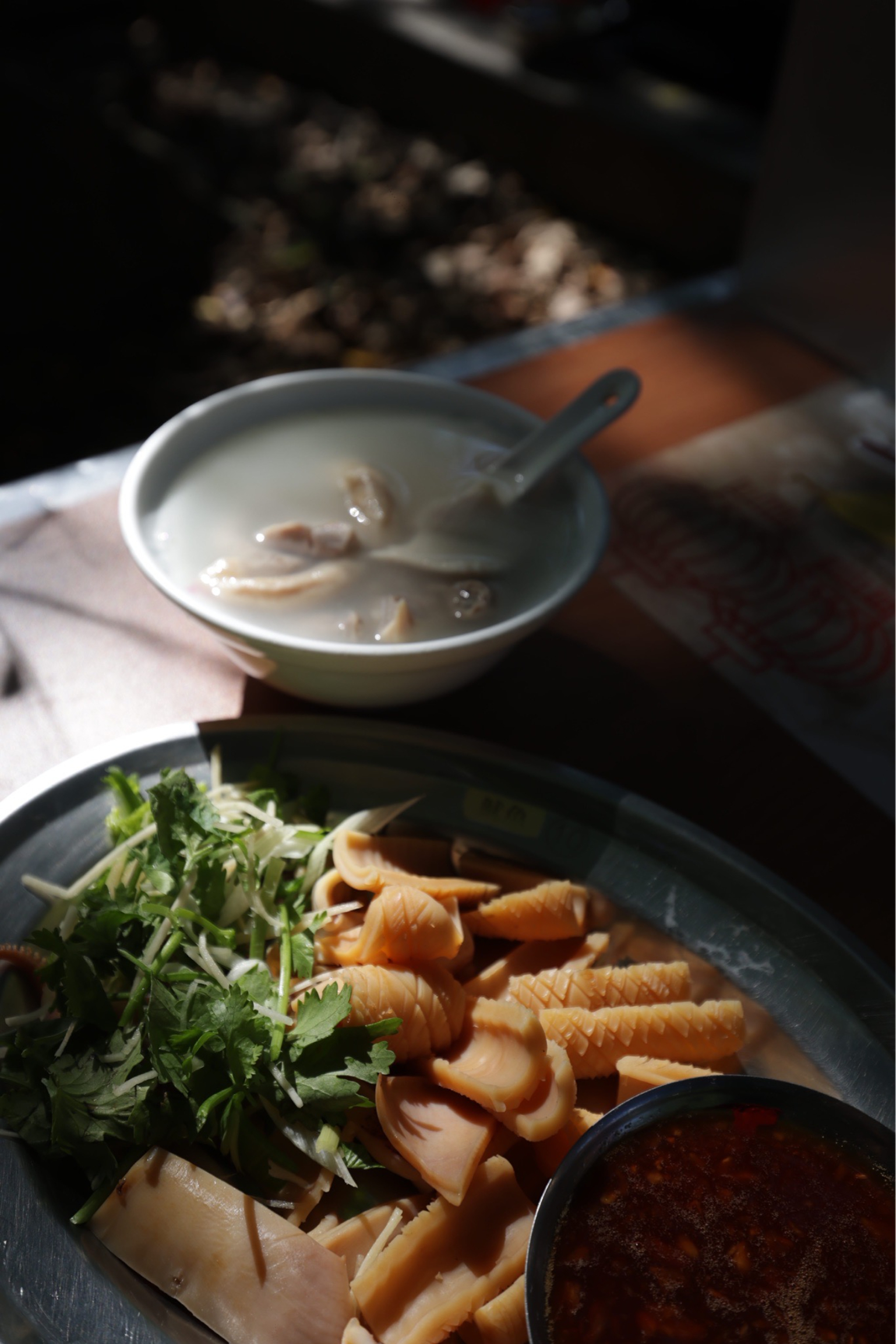 出發前往歷史悠久的北投市場,此起彼落的叫賣聲以及洶湧人潮,散發著蓬勃朝氣。市場內名號響遍全台的「矮仔財滷肉飯」,攤子上那鍋已滷成焦糖色的滷肉,香氣四溢, 光看就口水直流。點碗滷肉飯,再配上紅燒蹄膀、滷豆腐,最後以排骨湯、苦瓜湯暖暖收尾。縱使1 月的早晨微涼,也能用完整的一套豐盛早餐,讓身心幸福滿溢。