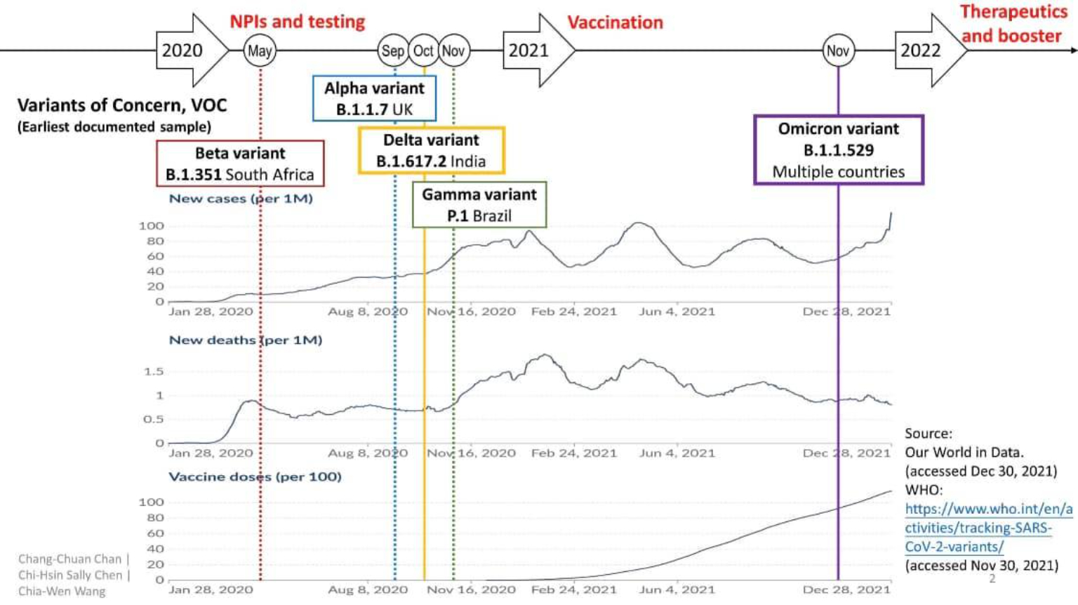 新冠肺炎全球大流行從2020年到2021年最後一天已經持續兩年,人類和病毒的世紀世界大戰中,人類在這個國家、那個城市的大小戰役中偶然出現短時間的佔上風,大部分時後大部分地方病毒都是贏家。