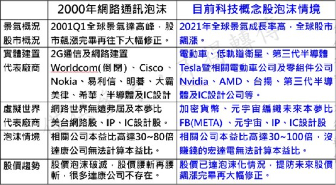 今年第一季台股可能重演去年第二季貨櫃航運股股價大漲,帶領傳產漲價股上漲,電子業績股及金融股有表現,卻可能出現股價飆漲過多且本益比太高的中小型電子股股價大幅修正的局面。因為這波電子股股價泡沫像極2000年網路通訊泡沫情境及破滅臨界點,見下表一所示,近期台股已出現拉業績、出投機,進行第三波割韭菜,2021年至今台股有三波割韭菜情況如下:
