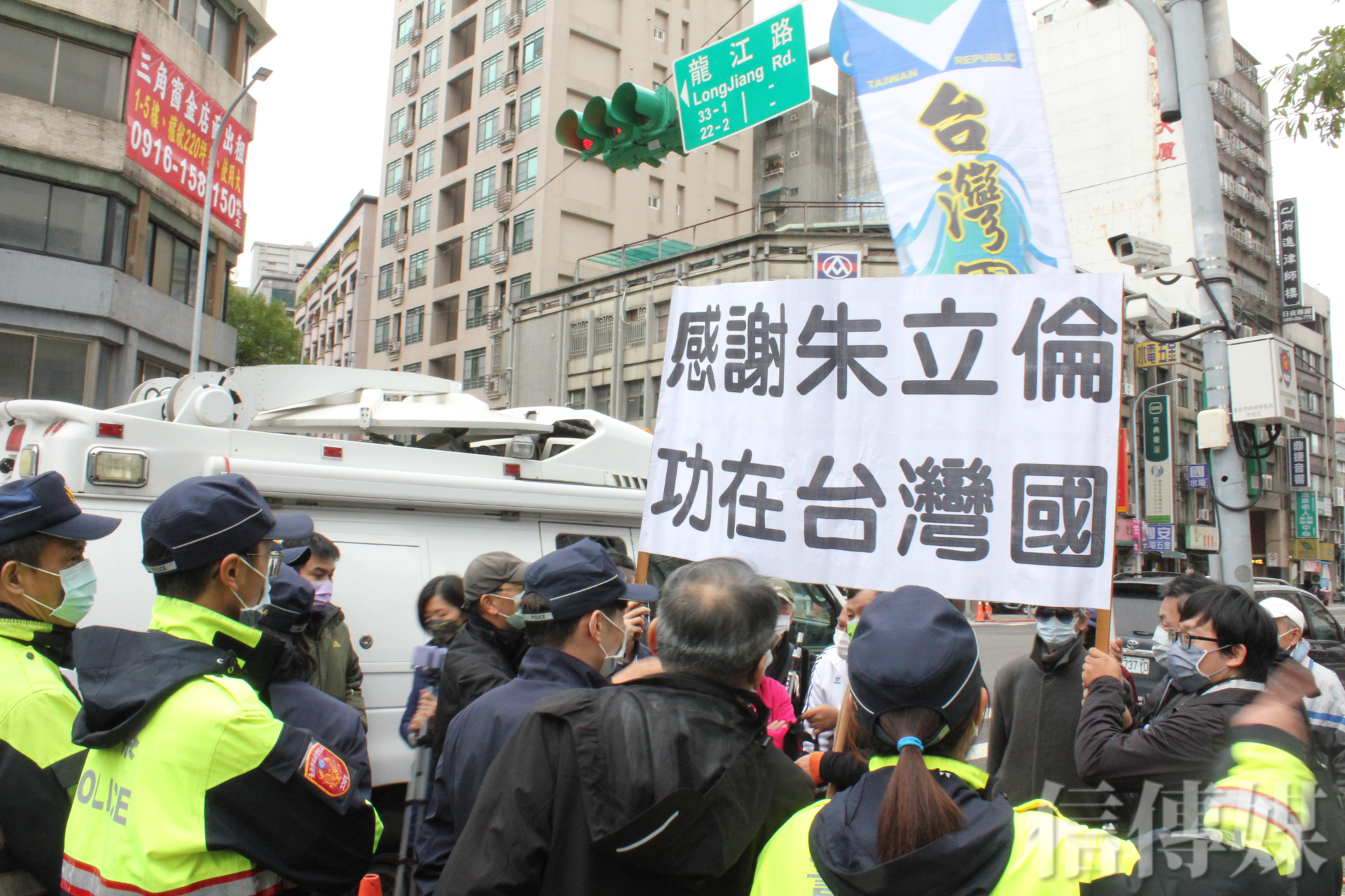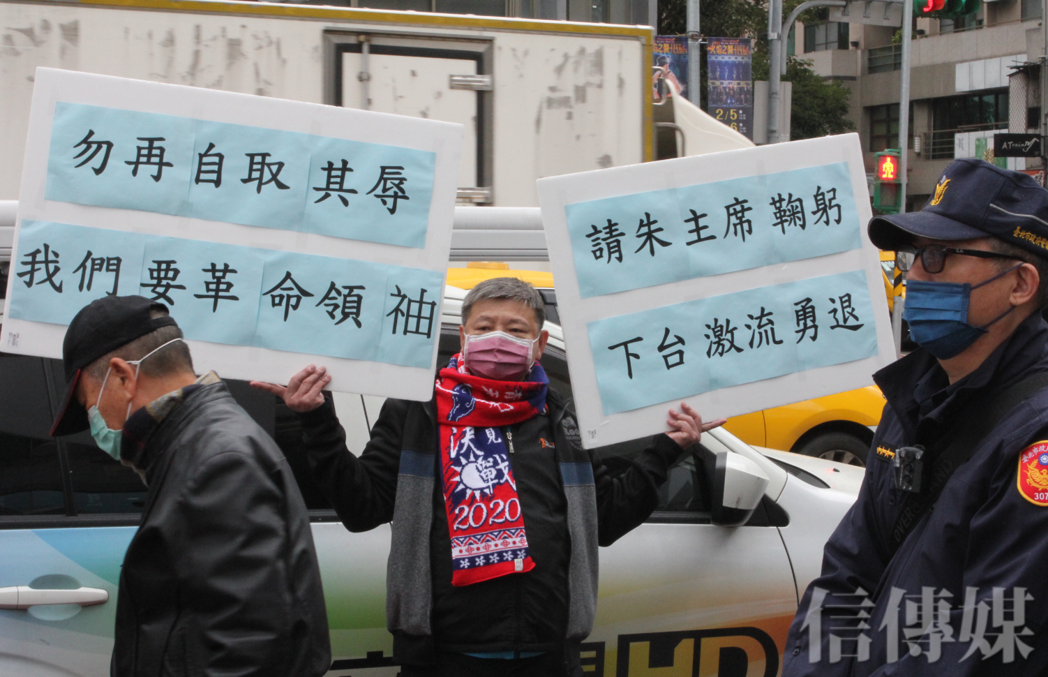 週末歷經台中補選、台北罷免2場敗戰,國民黨今天舉行選後首次中常會。統派團體「藍天行動聯盟」因不滿敗戰結果,加諸前立委龐建國輕生殞命,率眾前往中央黨部要求黨主席朱立倫下台。同一時間,獨派團體「台灣國辦公室」為了譏諷國民黨,則率眾前來「感謝朱立倫」,統獨2派人馬在國民黨大門口狹路相逢,衝突一觸即發。