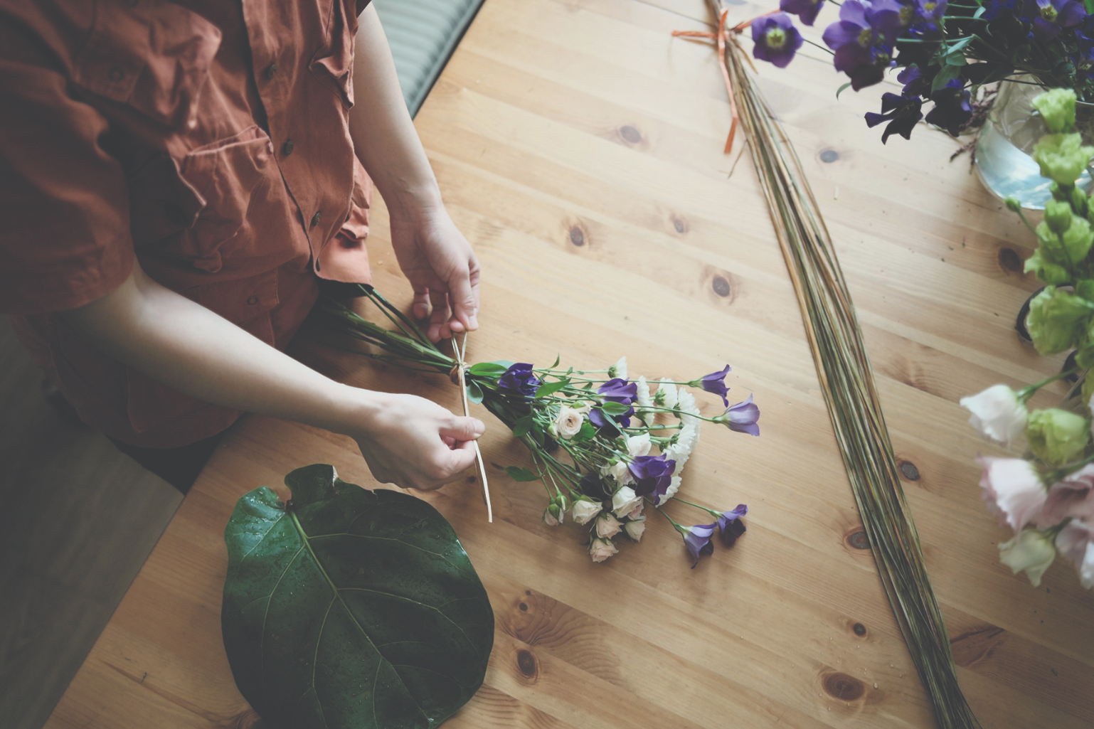 無論一束鮮花傳達祝福的心意,或是婚宴布置洋溢幸福的喜悅,「薑薑小姐」的花藝都期待展現「愛地球」的態度。以新鮮花束來說,包裝用的玻璃紙、緞帶、膠帶等最終會被丟棄,製造不少廢棄物。老家在苗栗苑裡的卓君築,和家鄉農民購買藺草取代緞帶、膠帶,以龜背芋的葉子取代玻璃紙包裹花束,「藺草像是有韌性的草繩,能留著日常做綁紮。龜背芋則可以當室內植栽,整束花零包材,視覺的與心意都有更好的呈現。」卓君築的巧思為美的內涵更加分。