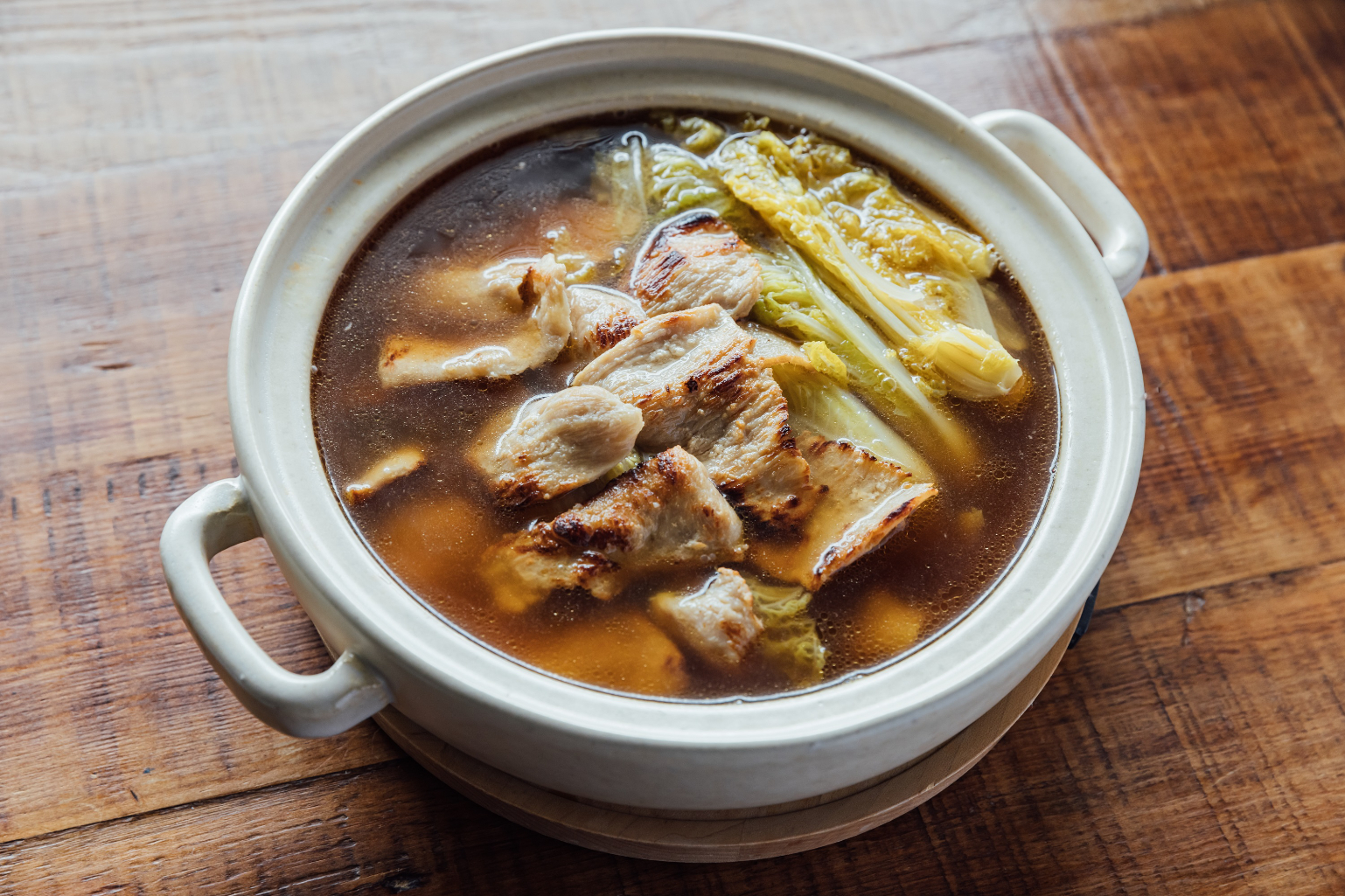 除了以湯品的溫度傳遞溫暖,烹調的過程也蘊含著煮湯人對品湯人的濃濃心意。在寒冷的冬日裡,水瓶特別推薦2款讓人暖身又暖心的湯品。「麻油鹽麴松阪肉片湯」選擇以鹽麴醃漬過的松阪肉片,佐以麻油、薑片作為暖食材,薑片的去寒效果結合麻油益氣活血的特性,再添入娃娃菜的甜味,讓人忍不住在冷冬中多盛上兩碗。