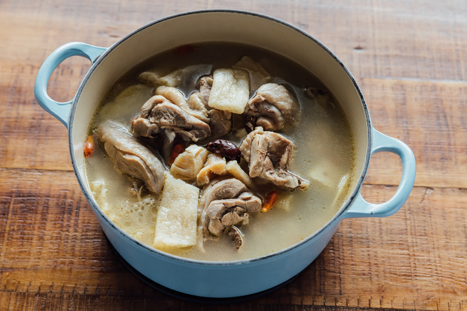 隨時撈除雞湯煮沸過程中產生的浮沫,以維持口感滑順。