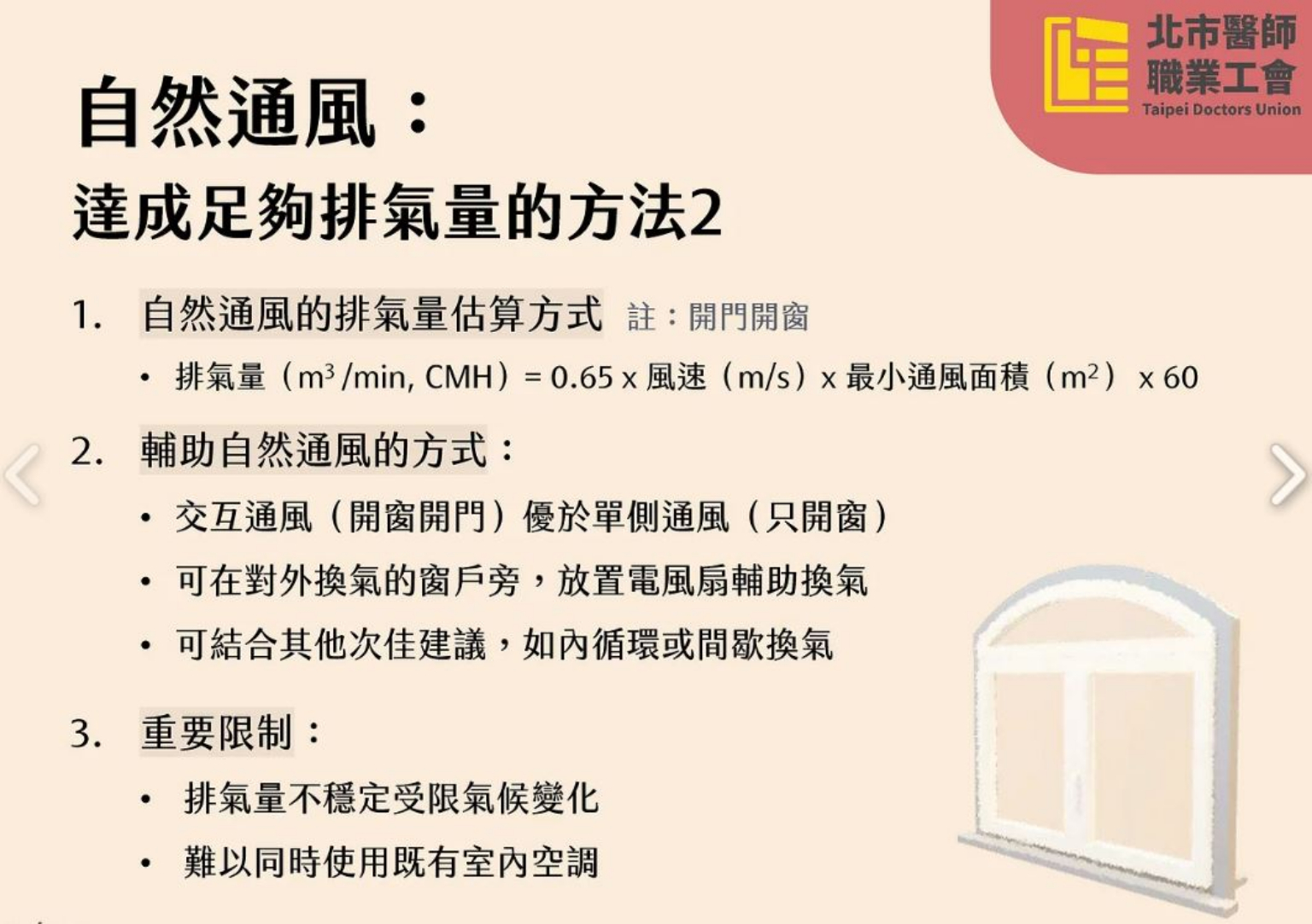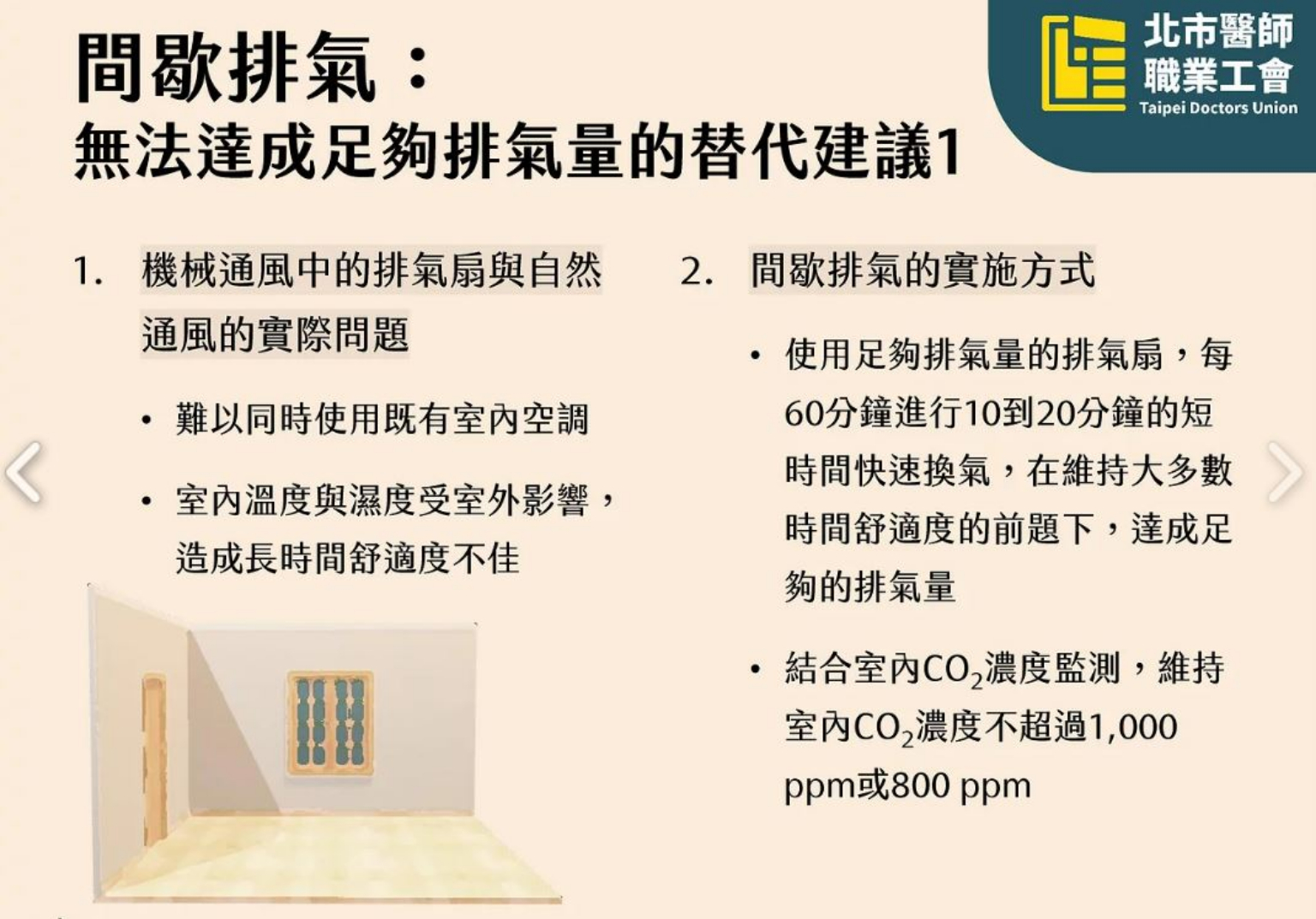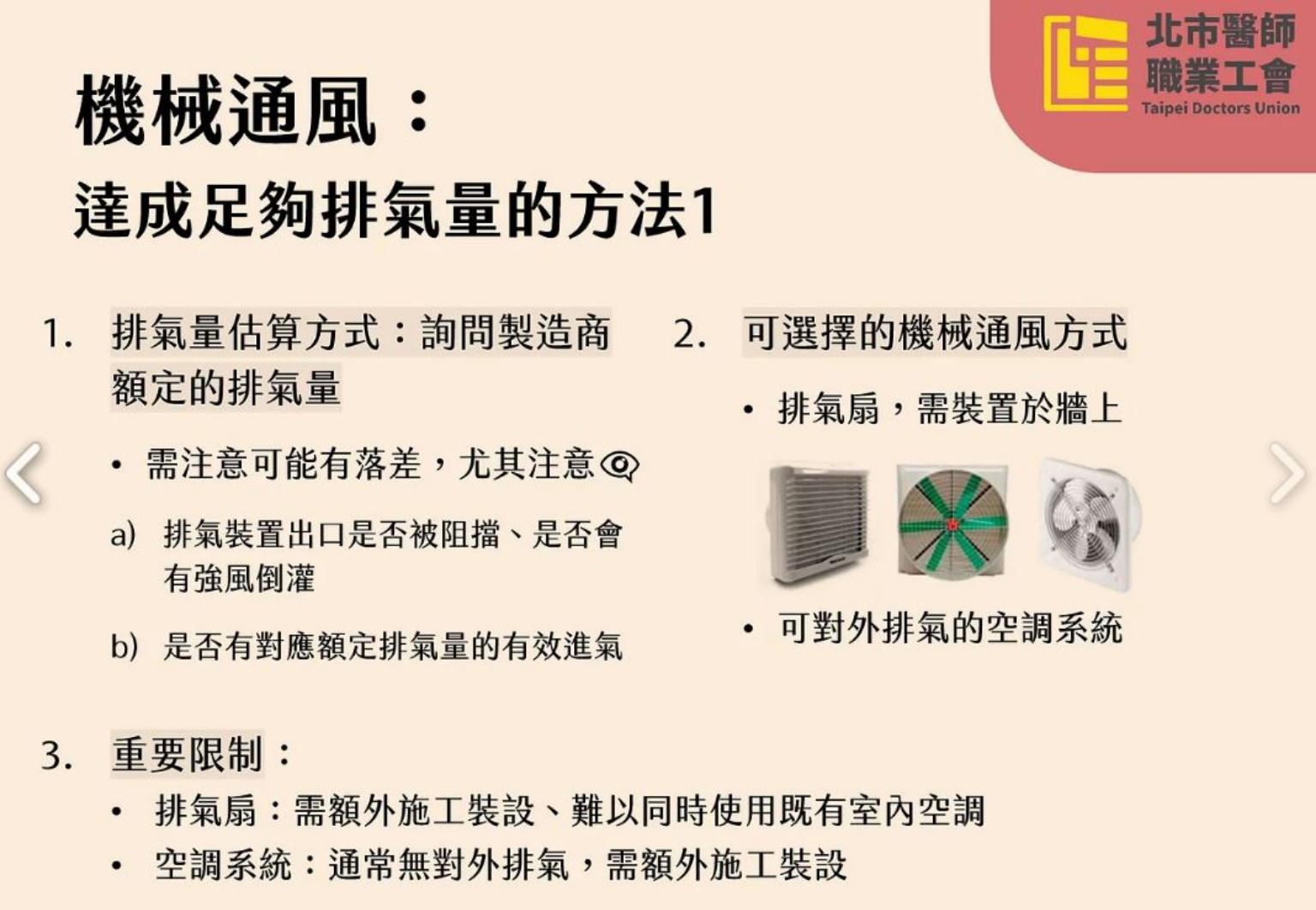 台北市醫師職業工會顧問、台大醫院職業醫學科醫師陳秉暉表示,「為了確保安全,維持室內的通風是一大關鍵。」